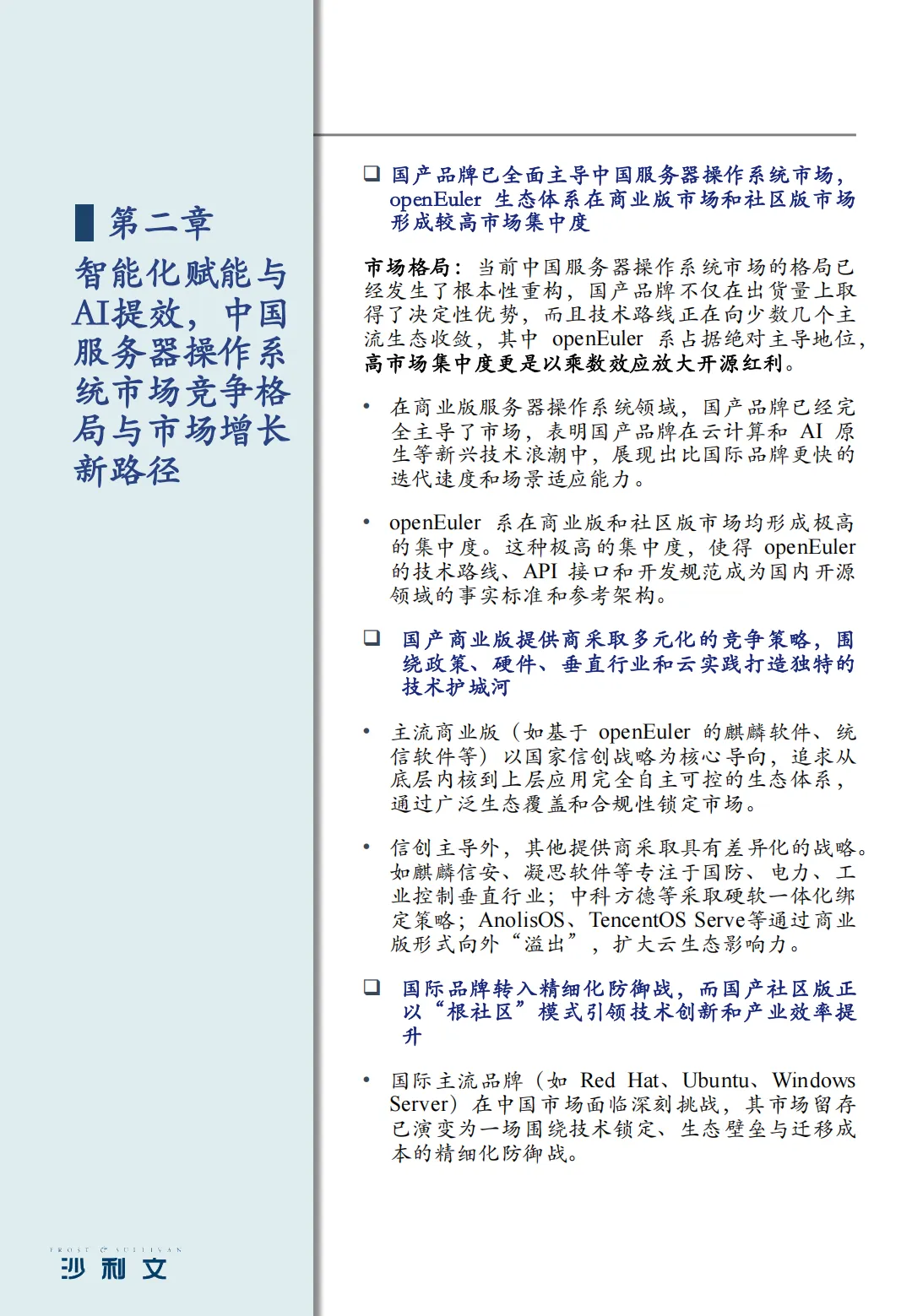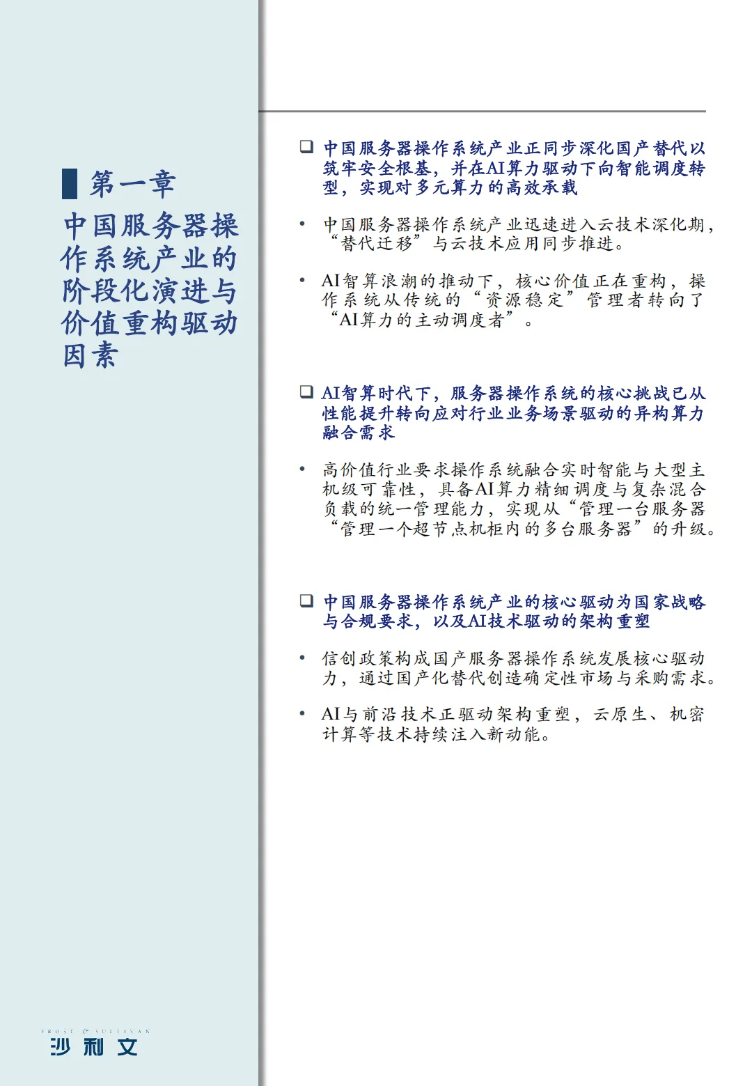 这份《2025年中国服务器操作系统行业发展白皮书》系统性地分析了中国服务器操作系统在AI异构算力爆发背景下的产业演进、市场格局、技术变革与未来趋势。以下是对白皮书核心内容的总结与分析: