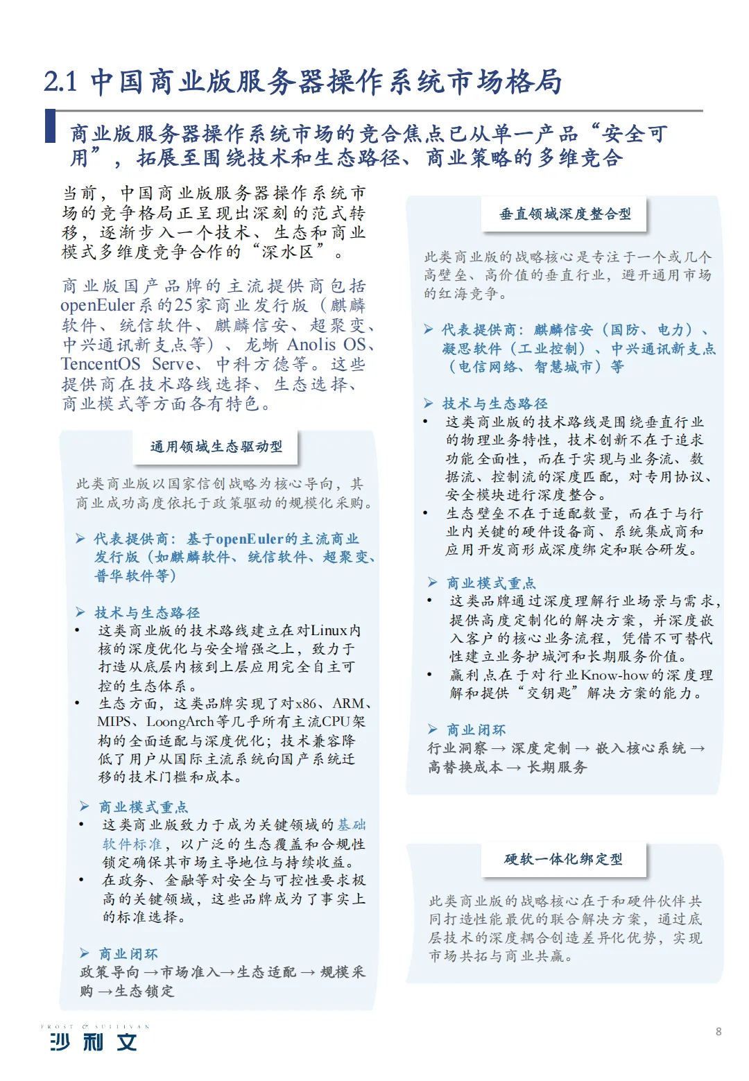 通用生态型:麒麟、统信等,依托信创政策广泛覆盖。