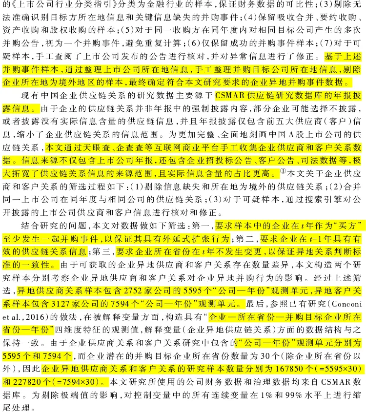 为了验证这一想法,研究团队构建了一个独特而精细的数据集。他们手工收集整理了2005年至2023年中国A股上市公司的海量供应链关系数据,来源不仅包括传统的年报,还拓展至招投标公告、客户公告等公开信息,数据量是传统商用数据库的近4倍,从而更全面地刻画了企业的真实商业网络。同时,他们匹配了同期的上市公司异地并购数据,最终形成了一个包含企业、其所在省份、潜在目标省份、年份等多维度的分析样本。