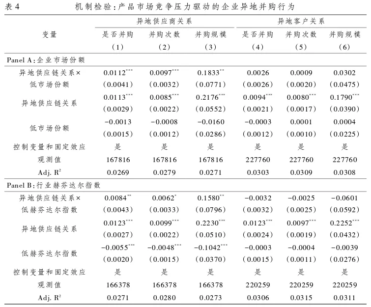 机制得到验证:研究通过巧妙的调节变量设计(如是否通高铁、是否存在异地商会),证实了信息渠道的作用;通过分析并购目标的特征,确认了企业更倾向于并购与自身供应链直接相关或处于同行业同地区的公司,印证了协同效应逻辑;通过区分产品市场竞争压力和市场需求压力,揭示了异地供应商和客户关系分别驱动上游整合与下游整合的不同动机。