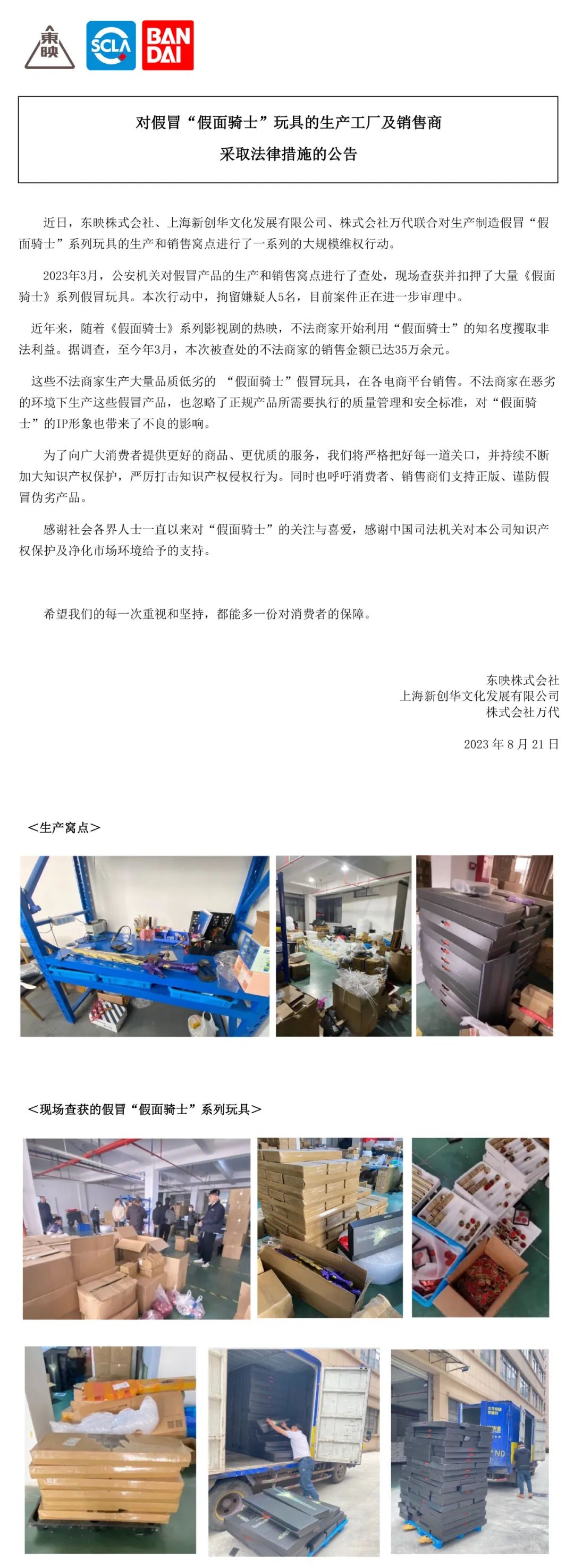 【重要公告】对假冒“假面骑士”玩具的生产工厂及销售商采取法律措施的公告