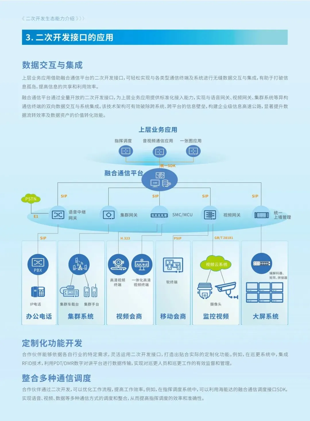 专网通信、二次开发、融合通信平台、API 接口、行业定制化、终端二次开发、平台二次开发、跨网融合、生态赋能