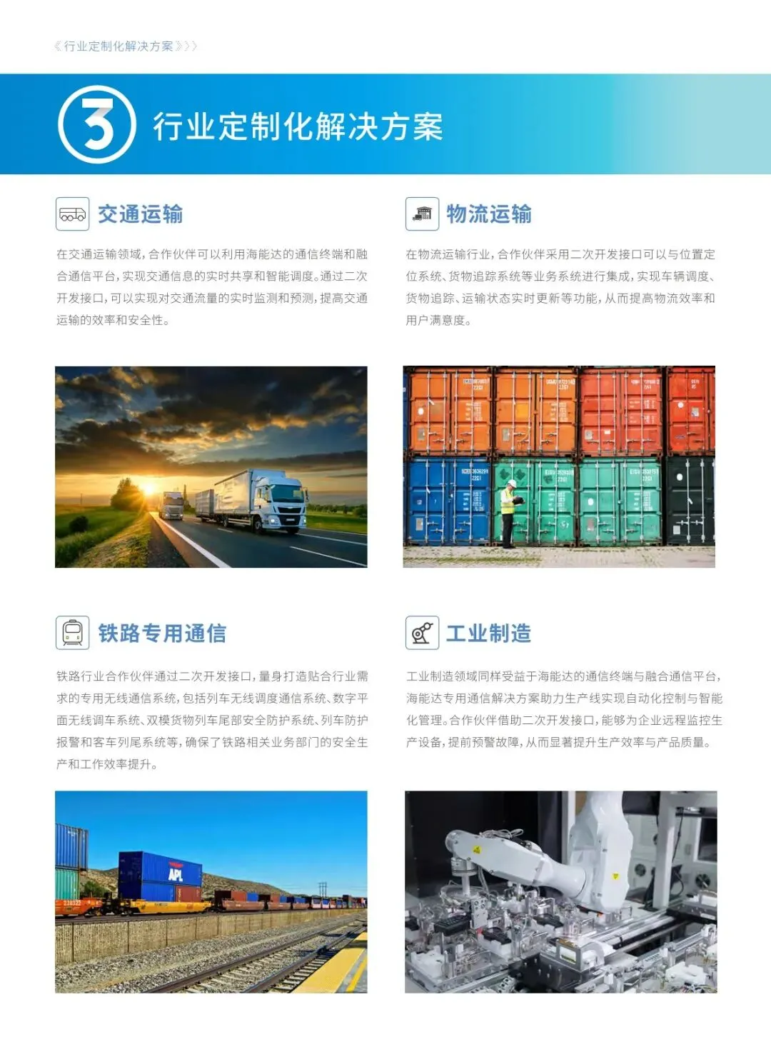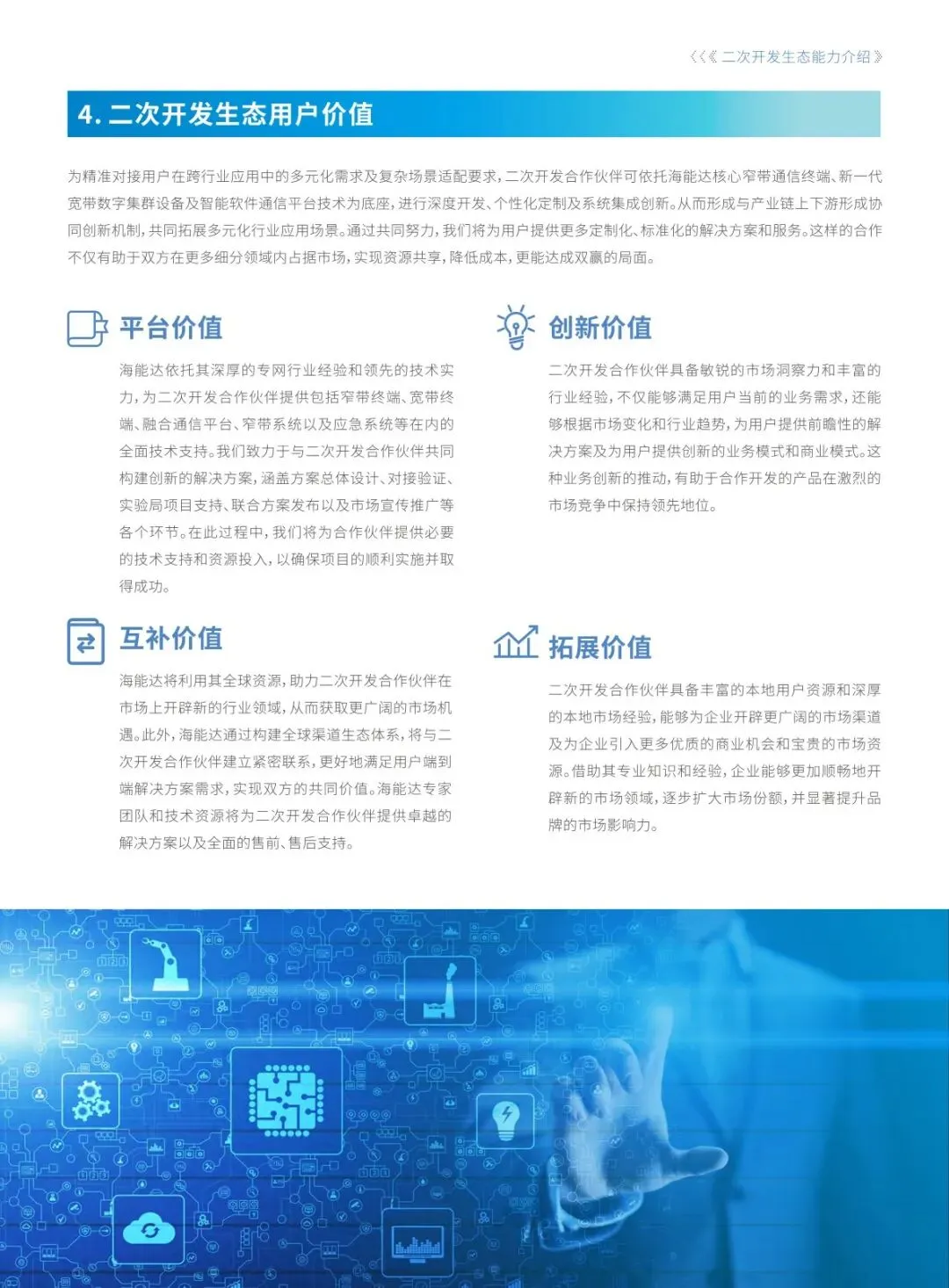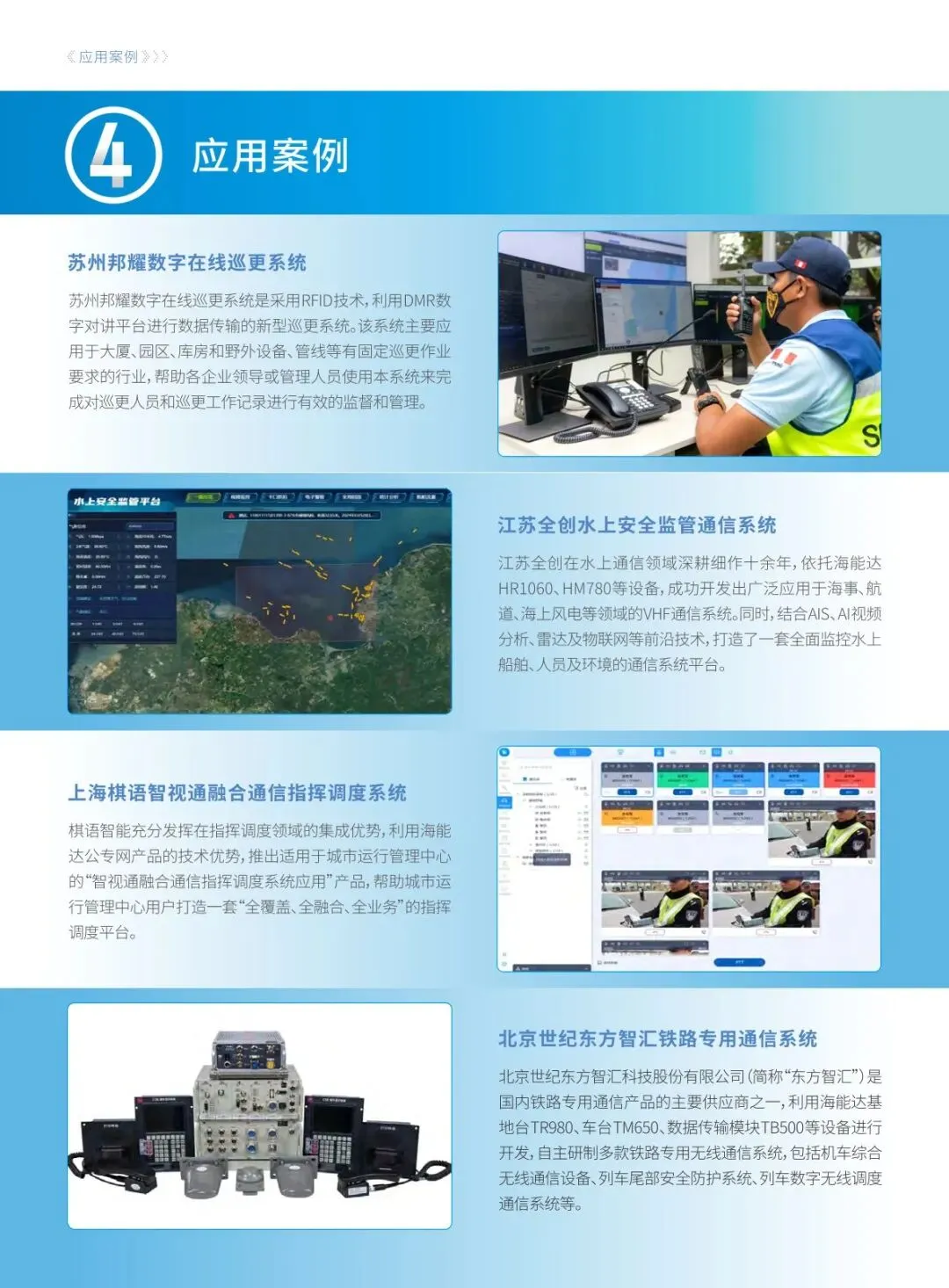 海能达拥有完善的二次开发能力体系,涵盖窄带、宽带类终端及融合通信平台两大核心板块。终端端可实现录音、蓝牙巡检 / 定位、车载调度等硬件功能开发和语音、数据业务软件定制,平台端开放基础数据、语音 / 视频调度等多类接口,还提供定位数据分发专属接口,满足不同开发需求,实现跨系统、跨终端的协同通信。 海能达二次开发生态具备四大核心特性,大幅降低合作伙伴开发成本。全域支持 10 + 种通信协议,实现跨网无缝对接;提供定制化协议转换接口,兼容老旧设备;基于 http+websocket 的标准化接口响应达毫秒级;封装主流语言 SDK 简化对接逻辑,整体将通信协议适配成本降低 90%,让开发者聚焦上层业务创新。 二次开发接口可实现多维度应用落地,助力企业打破信息壁垒、提升运营效率。通过接口能完成与各类通信终端和系统的无缝数据交互与集成,还可根据行业需求定制化开发功能,同时整合语音、视频、数据等多种通信调度方式,适配公共安全、工商业等不同领域的业务场景,构建企业级信息高速通路。 海能达二次开发生态为合作伙伴和用户带来多重核心价值,实现产业链协同发展。平台端提供全系列产品和全流程技术支持,合作伙伴凭借行业经验实现业务创新,双方依托海能达全球资源和本地市场优势形成互补,同时借助合作伙伴的本地资源拓展市场渠道,提升品牌影响力,达成双赢格局。 基于二次开发能力打造多行业定制化解决方案,贴合各领域实际业务需求。在交通运输、物流、铁路等领域实现智能调度和安全防护,工业制造和工商业领域赋能生产调度与设备巡检,政务应急和智慧城市领域提升指挥效率与城市管理水平,还落地了苏州邦耀巡更系统、江苏全创水上安全监管平台等典型应用案例。