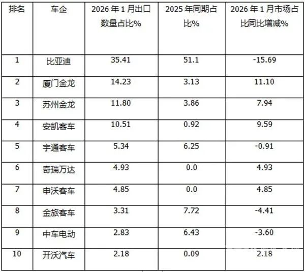 那么2026年1月其中的新能源客车出口咋样?竞争格局有变动吗?
