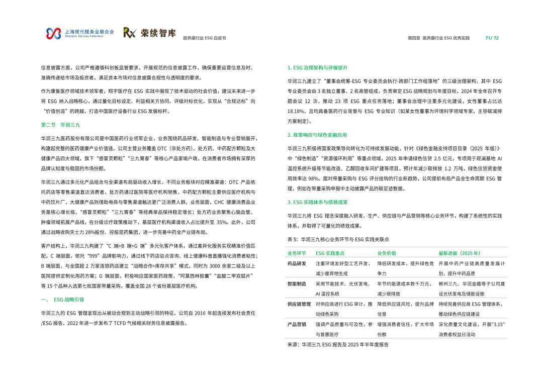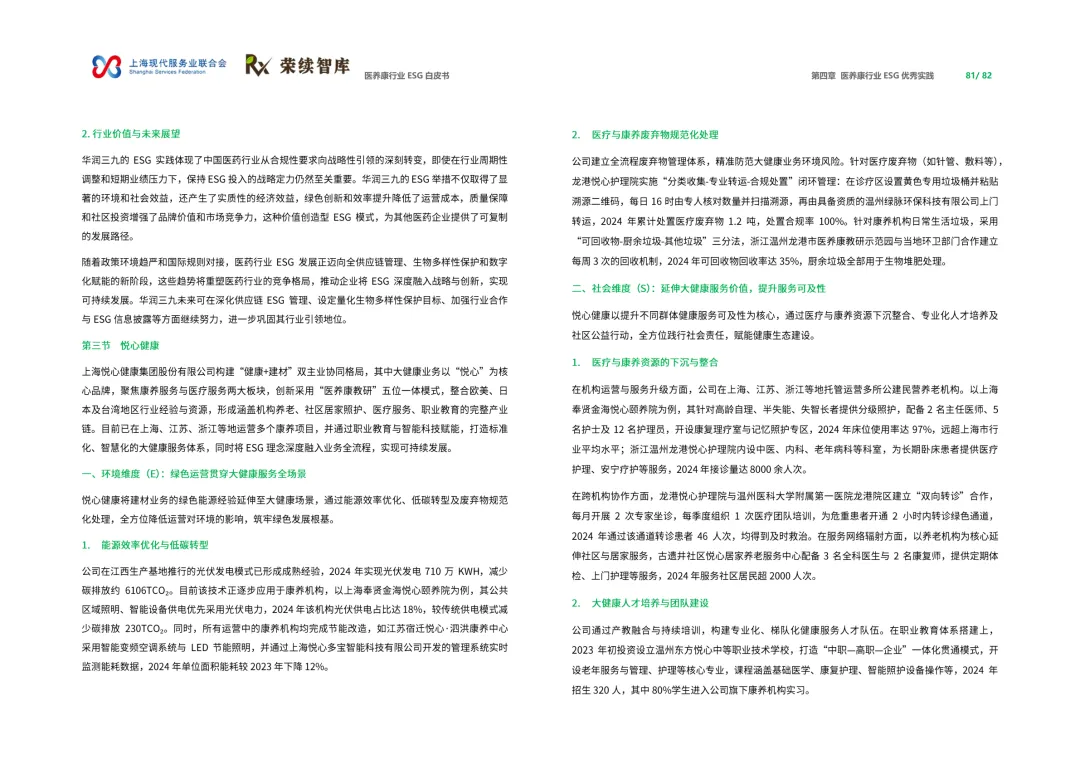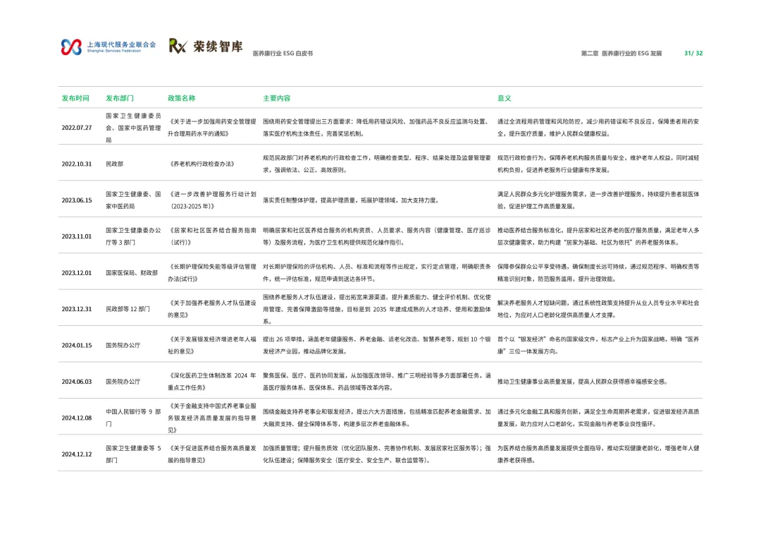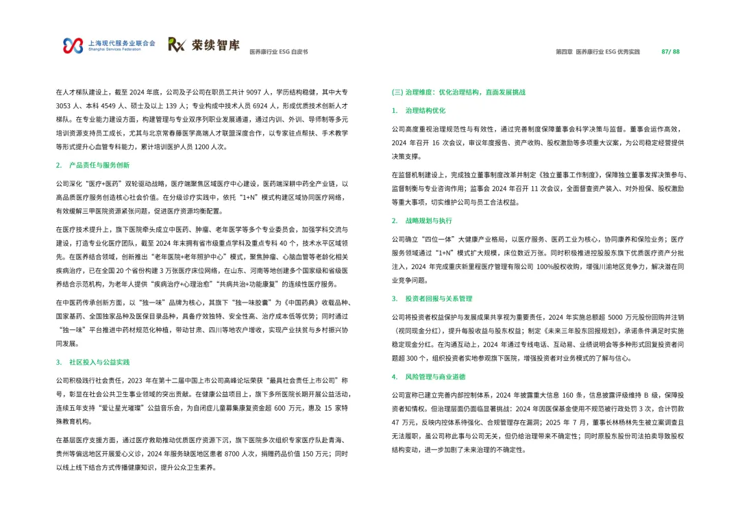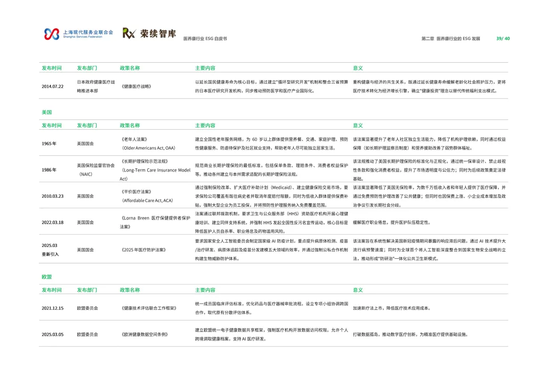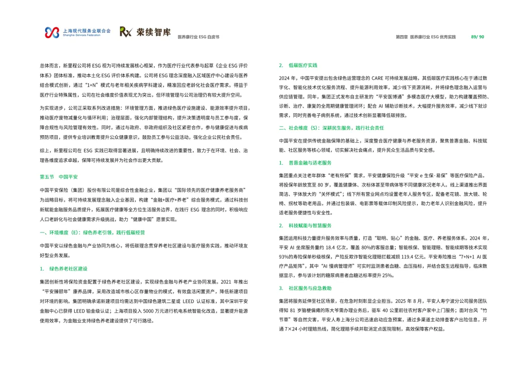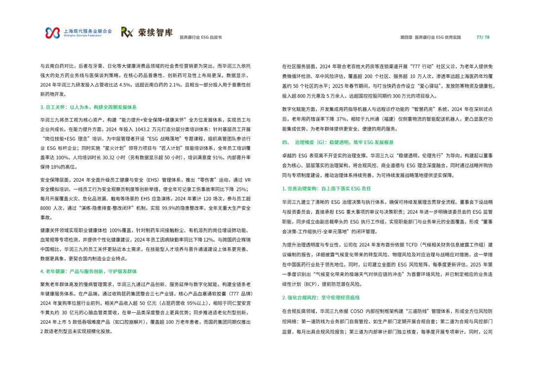 报告聚焦人口老龄化与健康中国战略背景,系统呈现行业可持续发展全景。白皮书涵盖行业概览、ESG 发展、细分领域及优秀实践四大核心板块,解析行业发展背景、价值链构成与国内外发展路径,梳理国内外相关政策支持体系。ESG 维度聚焦环境绿色转型、社会服务普惠、治理规范透明三大核心议题,环境端推进低碳运营与废物循环,社会端强化服务质量与健康公平,治理端完善伦理管理与数据安全。细分领域涵盖医药制造、诊疗护理、适老化改造、智慧养老,展现多元发展态势。白皮书收录翔宇医疗、华润三九等标杆企业实践案例,提炼可复制的行动经验,为政策制定者、产业经营者提供决策依据与行动路径,助力构建更具韧性与温度的医养康生态,推动产业价值与社会价值深度融合。