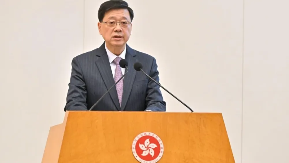 ▲特区政府早上(14日)在政总举办《“一国两制”下香港维护国家安全的实践》白皮书专题研讨会,李家超在研讨会上发言。政府新闻处图片