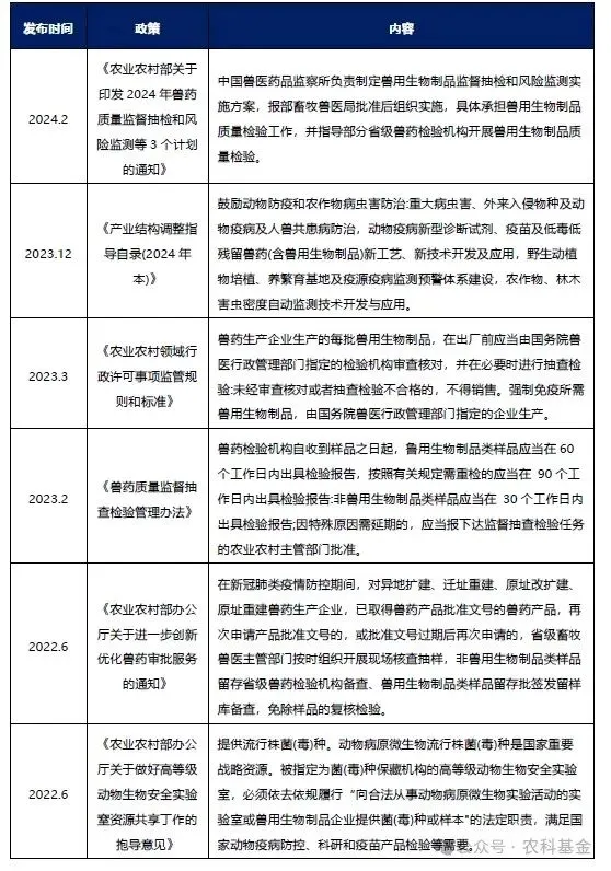 图3:截至2024年国家层面有关兽用生物制品行业的政策重点内容解读