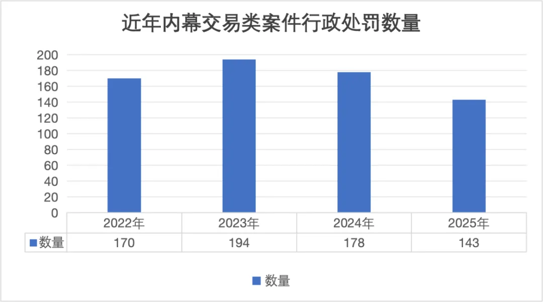 [1]注:143项行政处罚中包含部分利用未公开信息交易类案件,一并纳入内幕交易类案件统计,特此说明。