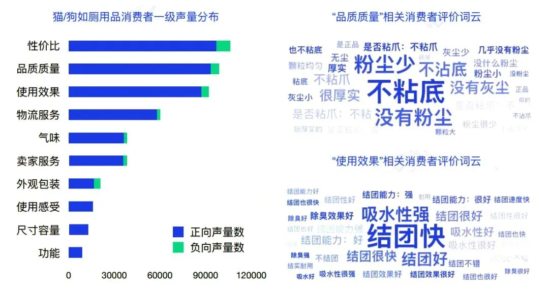 决策重点:聚焦性价比、品质(粉尘、清洁便捷)与效果(结团、吸水)。