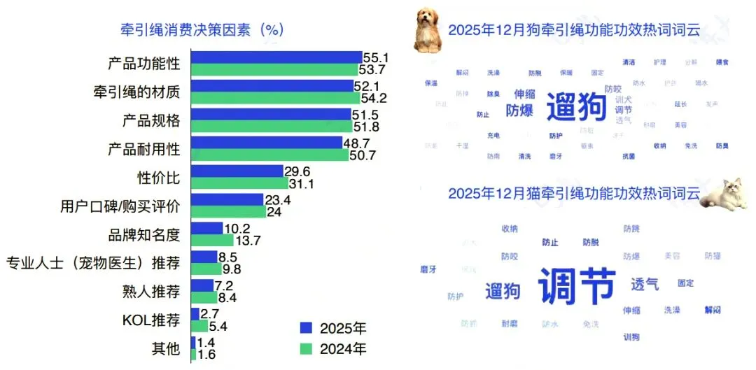 品类差异:牵引绳为核心,狗绳重安全便捷,猫绳重适配舒适,牵引绳市场进入专业细分时代。