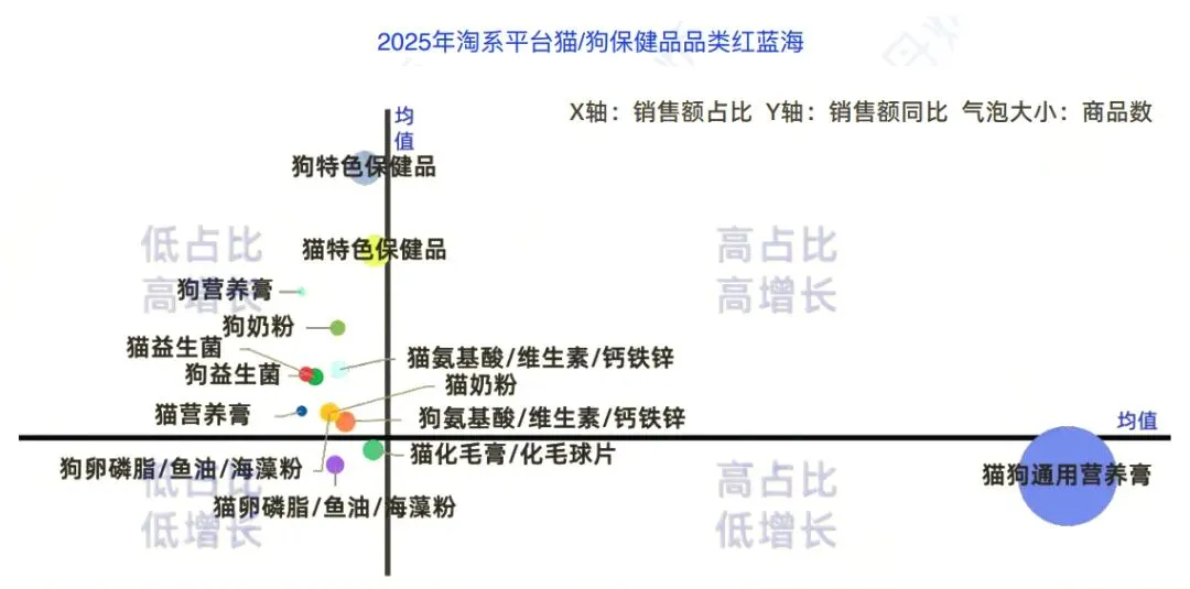 核心格局:宠物健康市场,呈现“预防强于治疗、猫狗绝对主导”的鲜明特征——宠主的健康管理意识越来越强,不再等到宠物生病才就医,而是主动做好日常预防,定期体检、补充保健品,推动健康市场从“被动治疗”向“主动健康管理”转型,2025年宠物医疗市场呈现“体检升,诊疗药品降”的结构性变化,就是最好的证明。