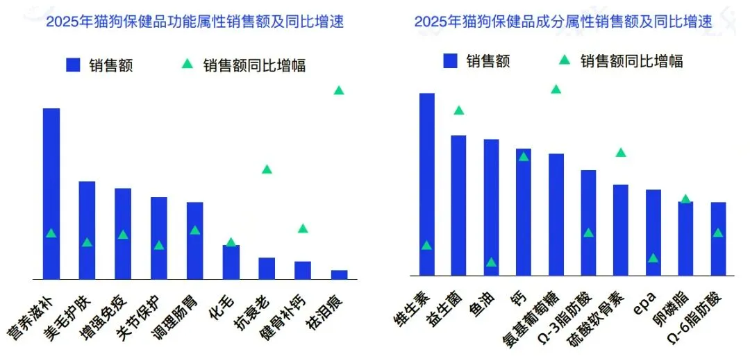 需求热点:转向靶向健康管理,抗衰老、祛泪痕需求激增,关节、肠道健康成分受青睐。