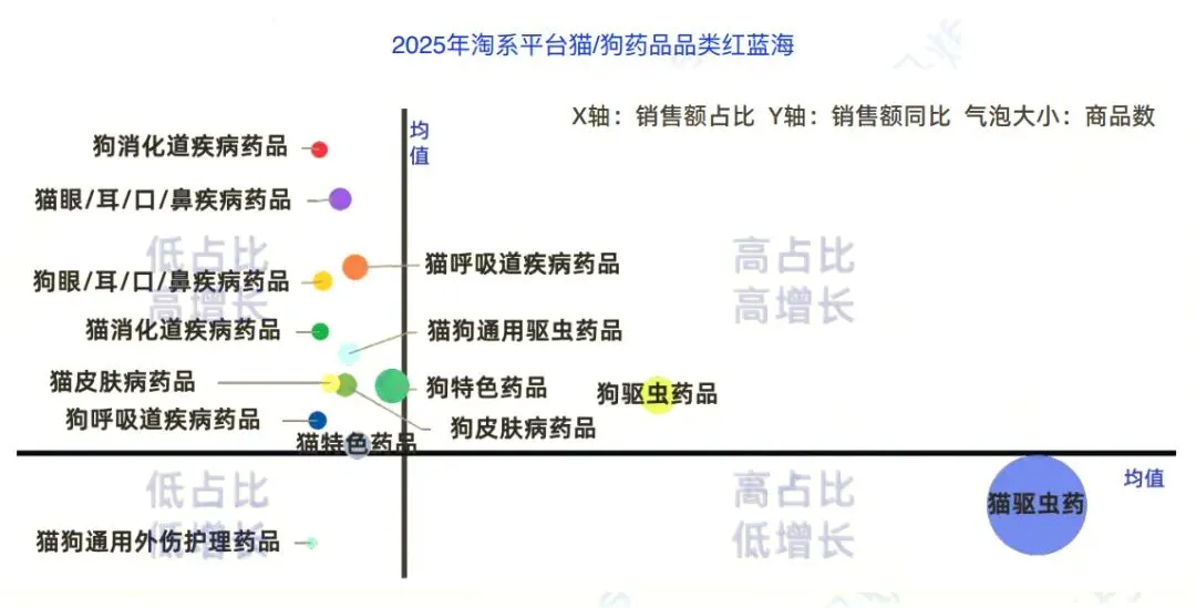 品类格局:驱虫药主导市场,皮肤病、肠胃病等细分药品增速显著。
