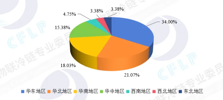 在冷库出租端,华东、华北、华南三大核心区域合计贡献超七成的市场份额。其中,华东地区以34%的占比稳居首位,作为全国冷库资源最密集的区域,其高标仓占比突出,智能化与绿色化水平领先,可出租优质资源充足;华北地区占比为21.07%,其依托农产品主产区的集散需求与首都都市圈的保供需求,冷库供给规模快速扩容;华南地区占比为18.03%,其凭借本地消费市场支撑、食品加工产能集聚,叠加面向东南亚的跨境通道红利,区域冷库供给呈现稳中有升态势。