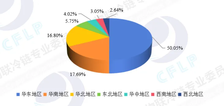 在冷库求租端,市场呈现明显的区域集聚特征,超过84%的需求集中在华东、华南、华北三大区域。华东作为绝对核心,凭借长三角的产业集群、跨境港口枢纽和高消费力,占据全国一半的冷库求租需求;华南和华北则分别依托食品加工产业、东南亚进口通道,以及北方农产品集散和都市圈消费,成为支撑市场的重要增长极,求租需求占比分别为17.69%和16.80%。