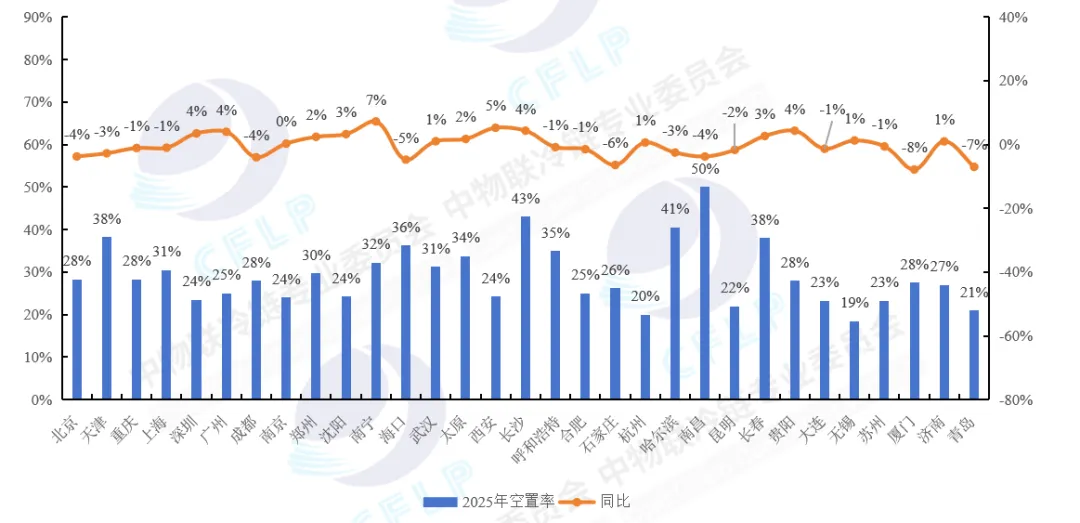 图4 2025年部分城市冷库空置率