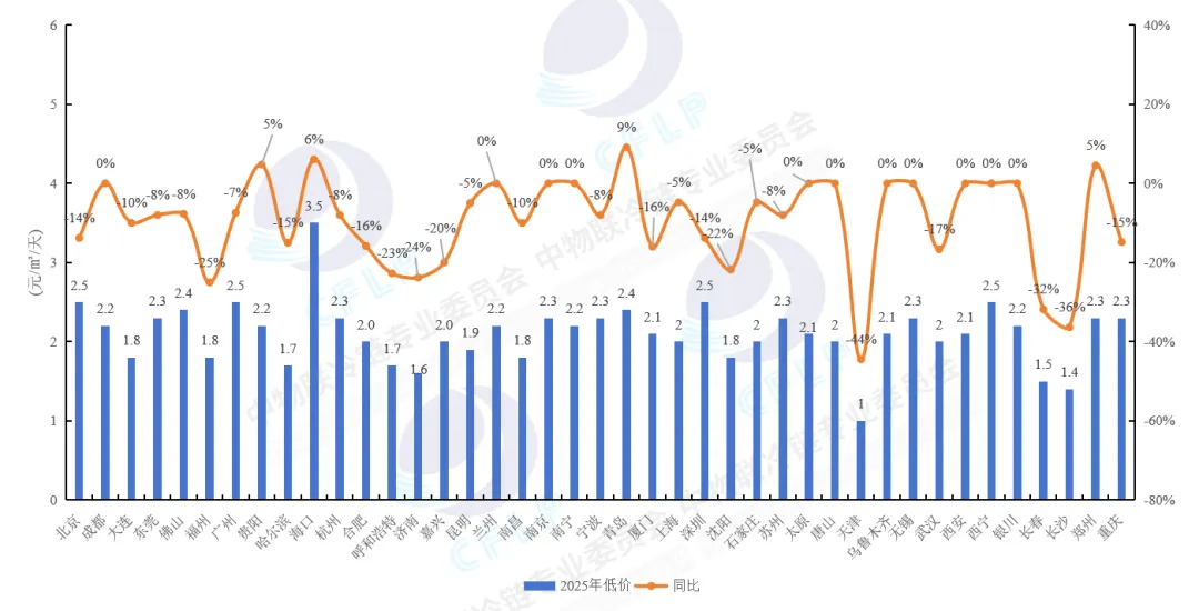 图5 2025年部分城市冷库平均价格(低价)