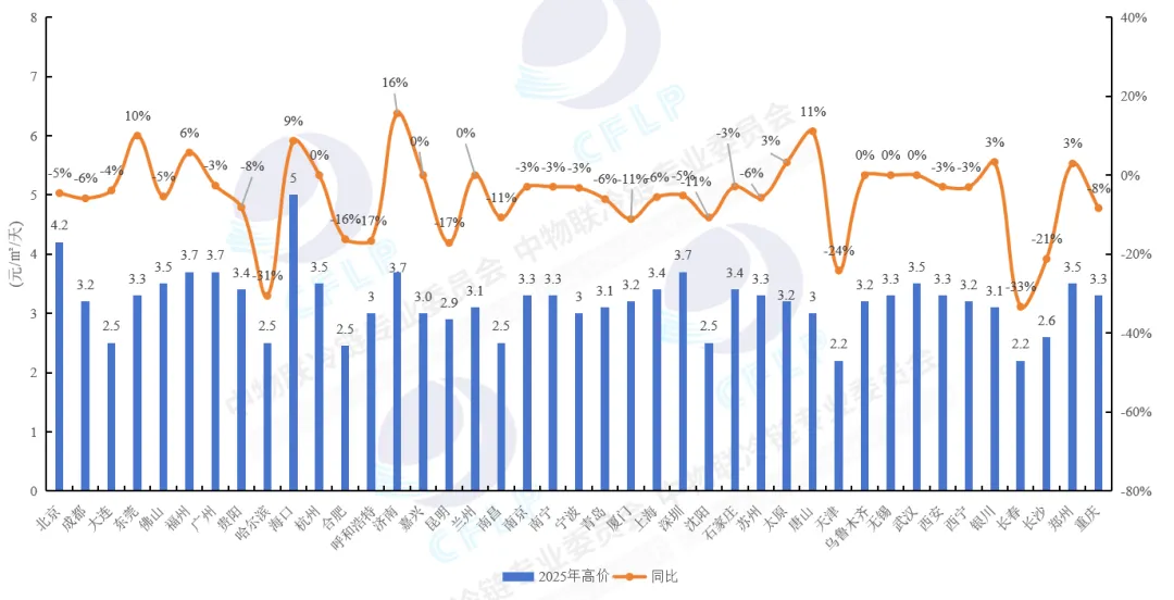 图6 2025年部分城市冷库平均价格(高价)