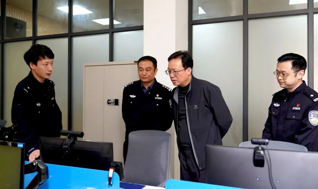 在县公安局,曾平为坚守岗位民辅警送上诚挚问候和新春祝福。随后,曾平来到情报指挥中心,通过大屏幕详细查看全县交通流量监测数据,了解重点路段疏导及智慧交通系统运行情况。他指出,春节期间人流车流激增,交通保畅任务繁重,要强化数据分析预测,科学调配警力,加强路面巡控疏导,严防长时间、大范围交通拥堵,确保群众出行便捷、道路交通平安有序。其间,曾平还来到县公安局侦查中心、经济犯罪侦查大队以及网络安全保卫大队,深入了解侦查中心视频侦查实战平台、无人机“黑飞”管控机制、经侦大队受立案机制改革以及网安电子实验室建设等各项工作情况,现场观看无人机反制演练,并听取相关工作情况汇报。曾平对县公安局坚持改革兴警、科技强警,不断提升公安新质战斗力取得的成效表示赞许。他强调,要紧盯治安新形势、新风险,持续加大科技强警投入力度,强化公安人才队伍建设,用实实在在的工作举措和成效,保障社会平安稳定,全力确保全县人民度过平安祥和的新春佳节。
