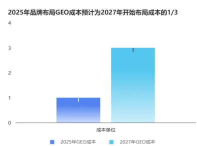 行业集中度快速提升,滞后布局门槛翻倍:2026年优质服务商将凭借技术、案例、资源优势,逐步提升服务门槛;2025年底前布局GEO的品牌,平均服务成本仅为2027年后布局品牌的1/3,且可优先锁定优质服务商资源,滞后布局不仅成本翻倍,更难以获得优质服务支持,陷入“被动追赶”的困境。