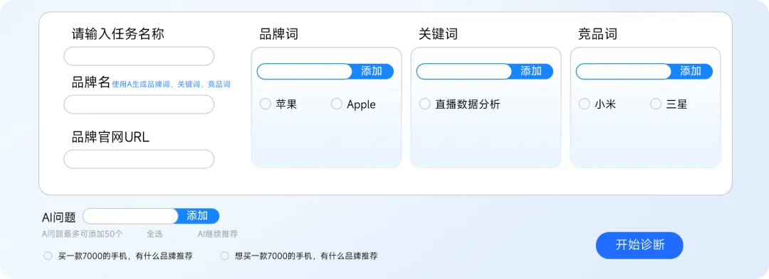 诊断与洞察:在前期诊断环节,平台依托自研多平台监测引擎,精准监测品牌在各AI平台的曝光占比、推荐排名等核心指标,结合竞品分析定位品牌短板。
