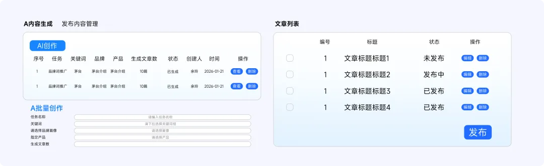 针对成长型品牌,提供轻量化、高性价比的方案,聚焦核心场景与核心平台,提供自动化内容生成与发布等核心服务,以有限投入实现高效曝光;