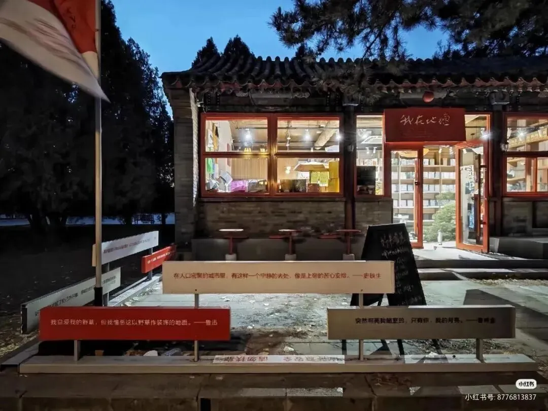 我在地坛书店为地坛公园内著名打卡景点,以北京历史文化和文学经典为主题,突出史铁生、余华、莫言等作品展陈,其中的每一款文创产品皆由视觉艺术家设计创作,咖啡饮品亦受读者好评。