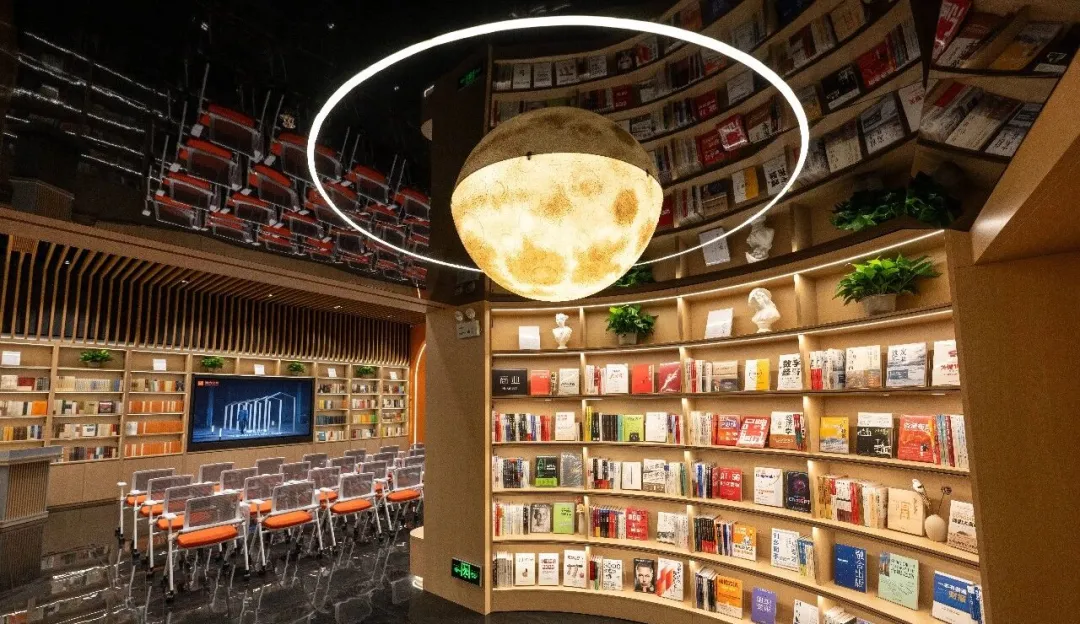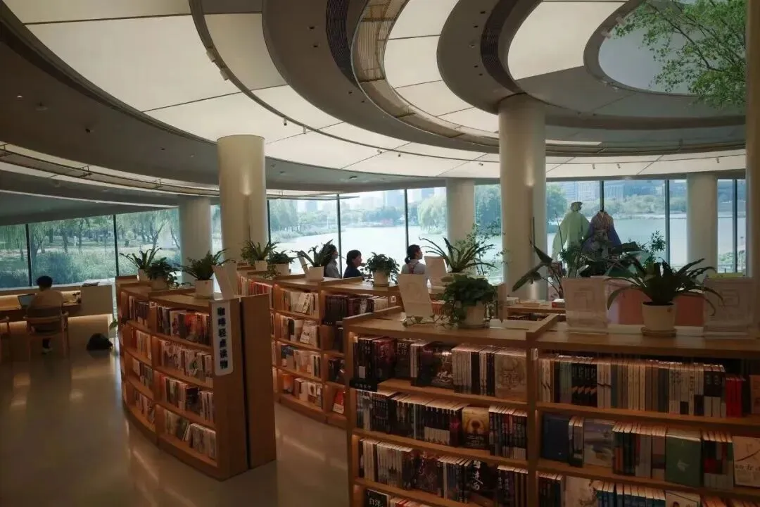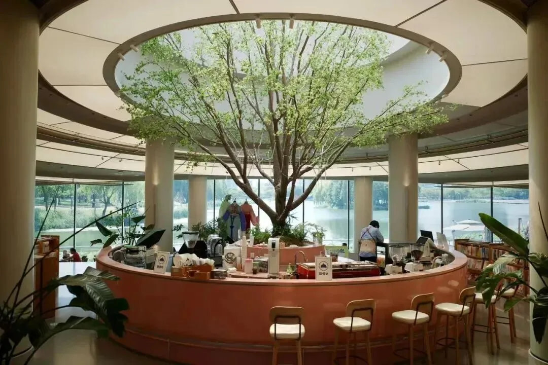 江南书局·疁城之瞳坐落于嘉定新城远香湖畔,是集图书、轻餐饮、文创产品、文化活动等于一体的复合业态文化空间,不仅是新华传媒旗下“江南书局”品牌的重要构成,更是嘉定区打造“远香文化环”城市会客厅的核心文化地标。书店以“瞳”为设计灵感,在空间设计上融入江南园林元素,与远香湖及周边环境融为一体,室内以一棵“生命之树”为中心,环形书架如知识丛林般环绕,书在景中、层层递进,图书与湖景共同营造出“书景交融”的阅读氛围,重新定义“书店即景观”的城市空间美学。