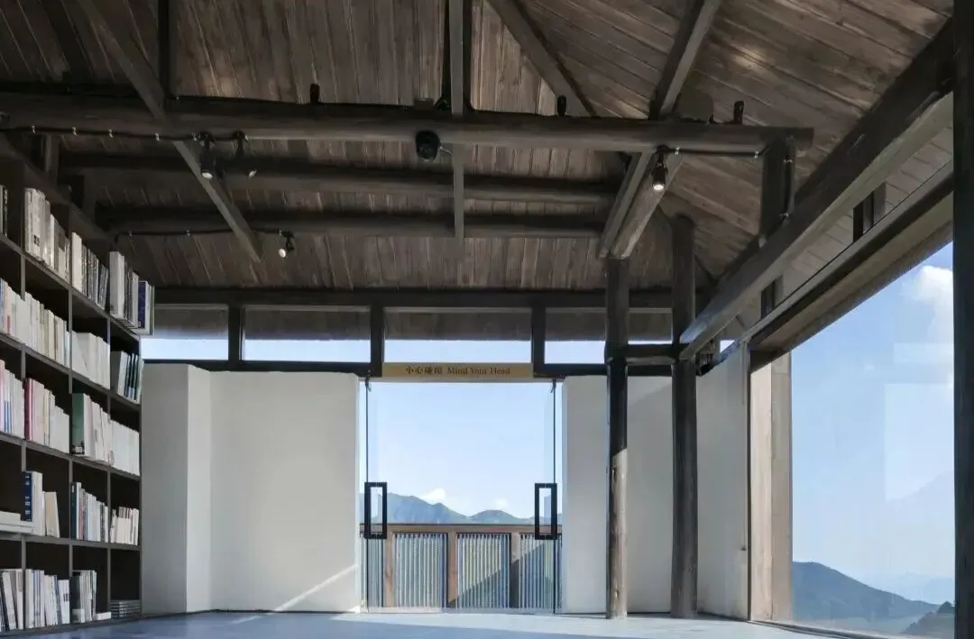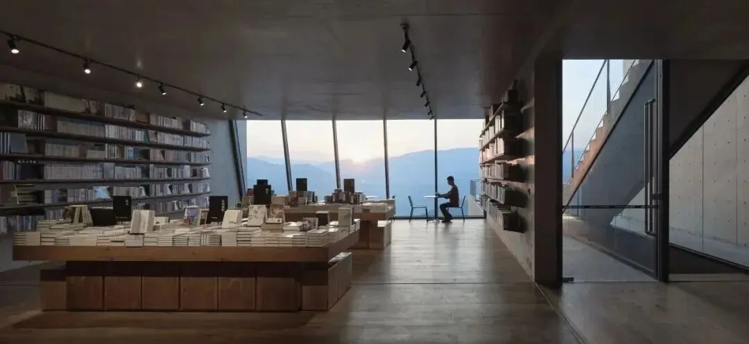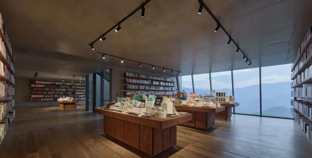 书店坐落于高黎贡山山巅的改造观景台上,直面怒江大峡谷,是一座集阅读、观景、文化体验于一体的边境书店。书店由建筑师华黎设计,灵感来源于傈僳族传统图腾“弩”与山地村落的肌理。内部空间分为三层,涵盖书区、咖啡馆、洞穴剧场与公共观景台。在选书上,书店突出“在地、民族、乡村”特色,设有少数民族文学、边疆文化、汉学等专题分区。同时,推出融合傈僳族、怒族纹样的文创产品,将峡谷风光与民族艺术转化为可触摸的记忆。