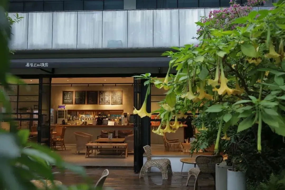 屋顶上的樱园是一家闹中取静的花园餐厅,2014年开店以来,以“好吃第一,文艺第二”为主张,有“成都最文艺餐厅”和“人类学餐厅”之称。又是一家以售卖作家签名书为主的书店,举办写作工坊、樱园读写俱乐部、文学课、人类学观影会、看画课等各种文化活动。