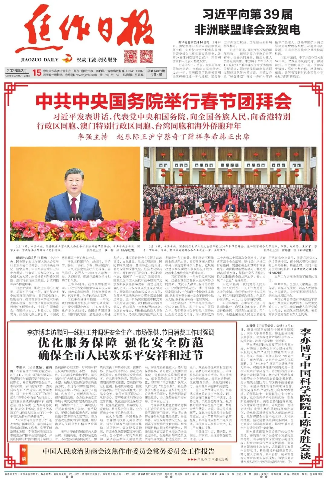 2026年2月15日《焦作日报》A01版