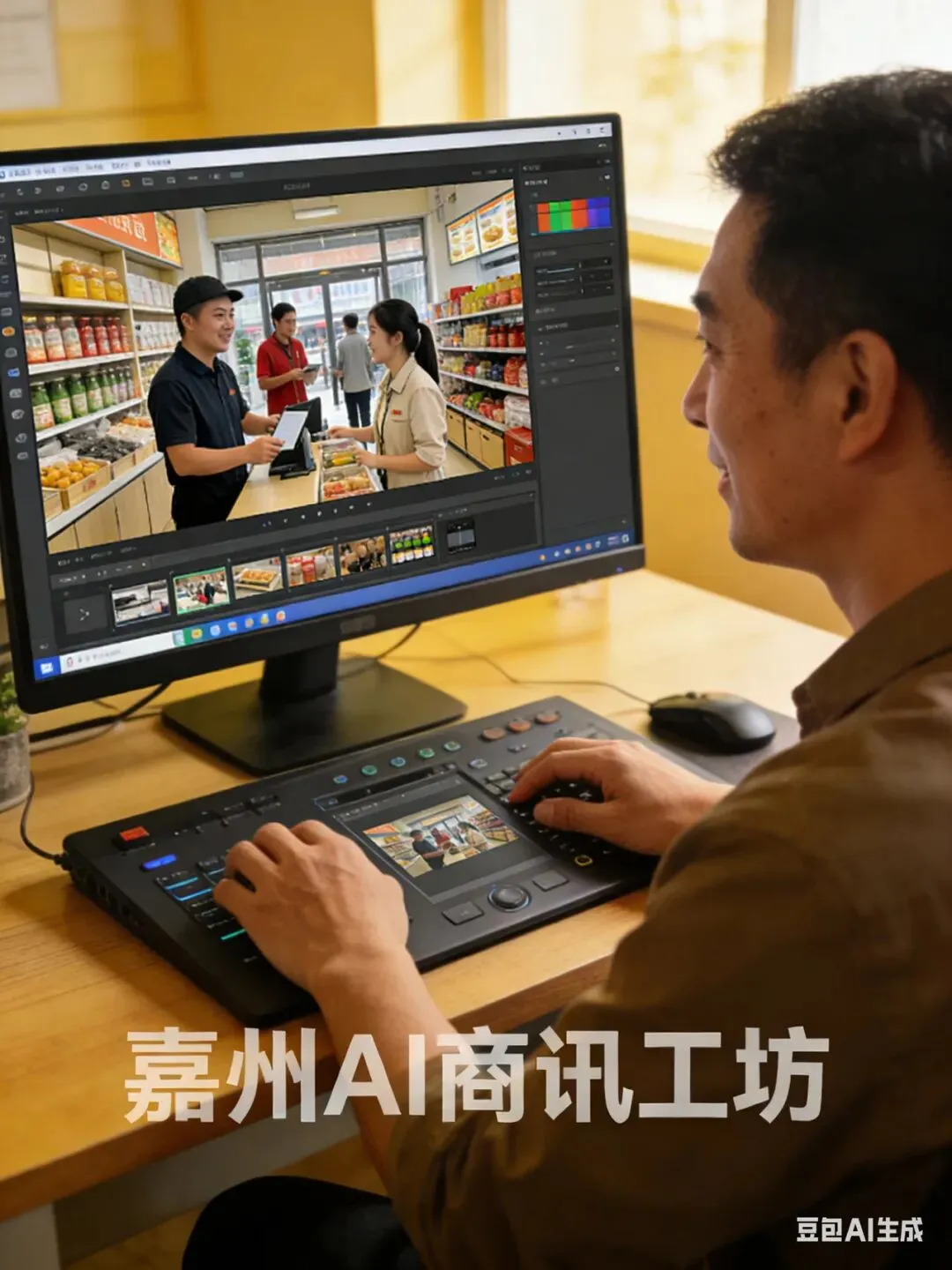 三四线城市的一家十年老超市,之前一直面临着商品同质化、客流被线上平台分流的困境,营业额持续下滑。2025年下半年,老板开始转型做AI+短视频+同城直播。