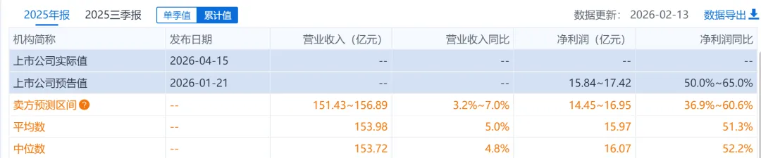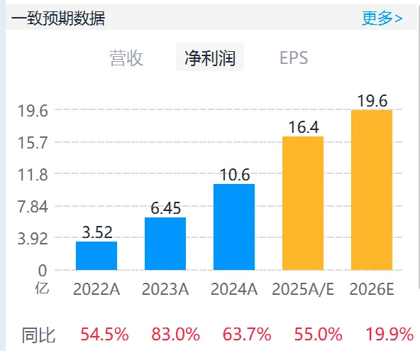 机构对2026年归母净利润的一致预期中值约19.6亿元,同比+20%左右,对应EPS约0.7元。
