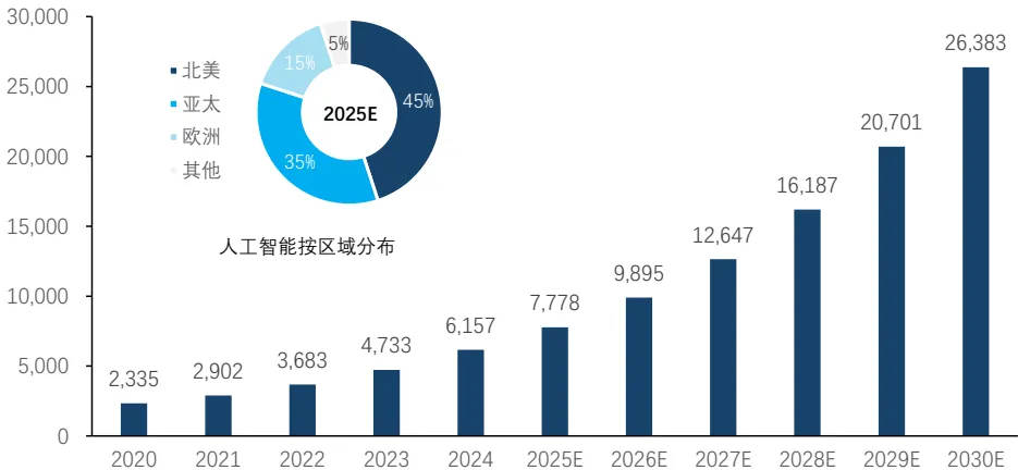 2024年全球AI市场规模达6,157亿美元,预计2030年突破2.6万亿美元,年复合增长率超30%。