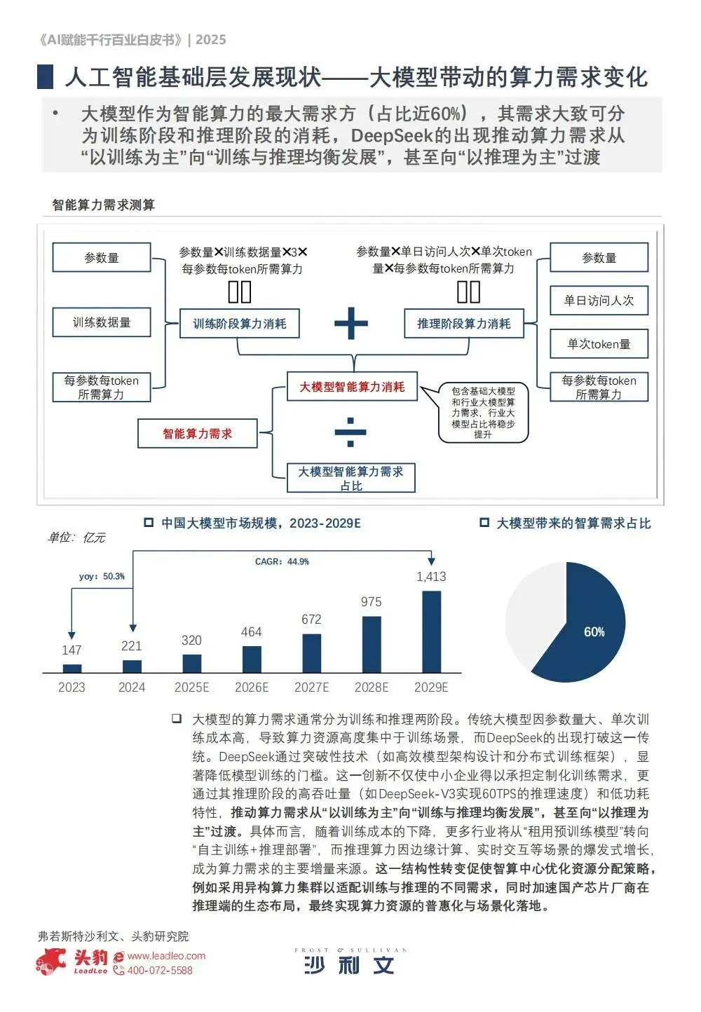 大模型消耗近60%智能算力,DeepSeek推动需求从“训练为主”转向“训练-推理均衡”,边缘计算与实时交互成新增长点。