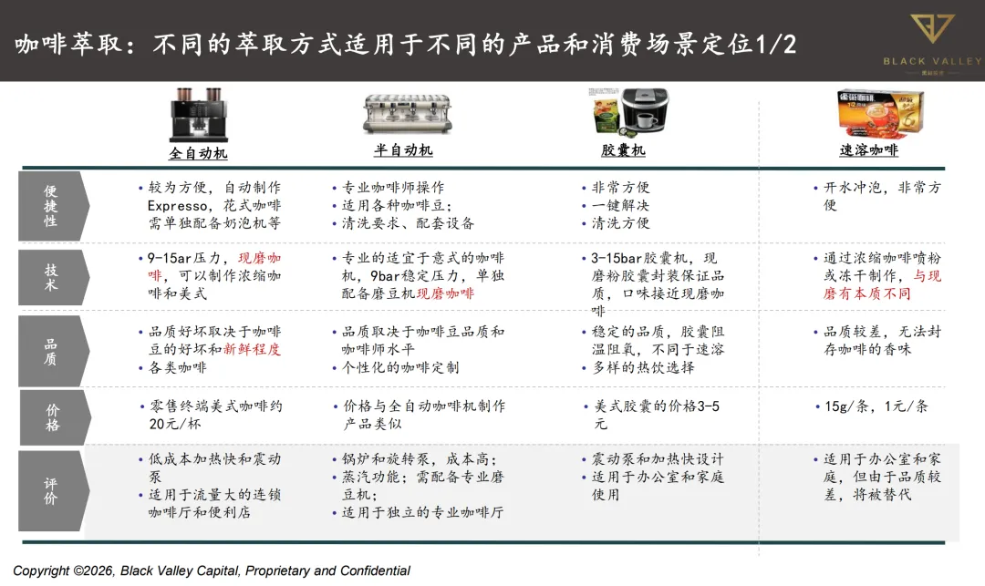 全球范围内,绿色合规是硬要求,EUDR落地后,行业对供应链合规的重视度大幅提升,同时AI也开始应用到种植和烘焙环节,功能性咖啡比如添加益生菌、胶原蛋白的产品越来越受欢迎,行业并购整合的动作也不断。中国市场的核心趋势很明确,现磨咖啡已经成为主流,占整个市场规模的86.4%,下沉市场门店占比不断提高,客单价也在持续下滑,“咖啡+书店”“咖啡+加油站”等跨界融合场景越来越多,国产品牌的话语权也在不断提升。驱动因素各有侧重,全球层面主要是极端气候推高了咖啡原料价格,加上供应链合规要求不断升级;中国这边,咖啡已经从精英专属变成大众刚需,消费平权趋势明显,自动化设备普及让供应链越来越成熟,35岁以下年轻群体占消费主力的72.5%,消费粘性高,而且中国人均咖啡消费量还不到全球平均水平的五分之一,还有很大的提升空间,同时云南咖啡豆精品率提升,品牌直采带动产业正向循环,也进一步推动了行业发展。