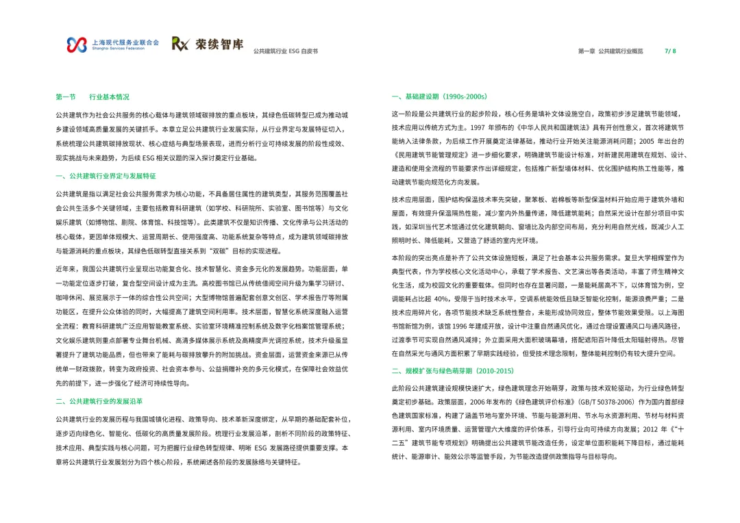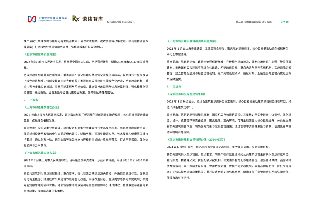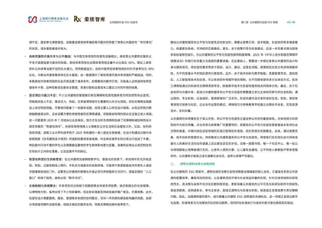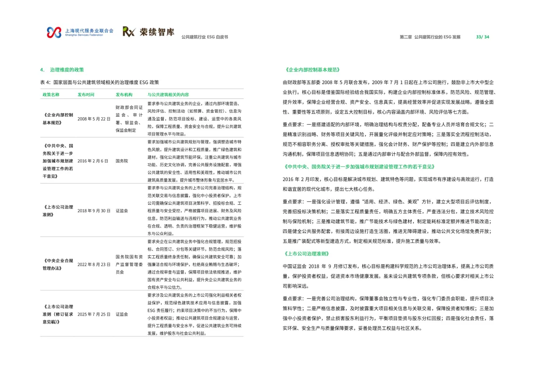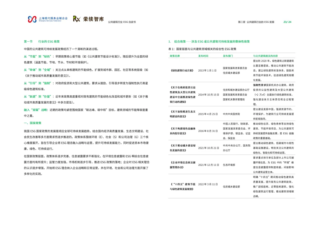 公共建筑行业 ESG 转型已成为城市可持续发展的核心支撑,政策体系从单一节能向全生命周期绿色管控演进,覆盖新建标准、存量改造、可再生能源应用等关键领域,形成国家与地方协同推进的治理框架。行业聚焦环境、社会、治理三大维度,环境端以碳减排为核心,社会端强调服务公平与包容性,治理端注重决策透明与合规。细分领域实践各具特色,教育建筑侧重全周期可持续设计与运维优化,体育场馆通过改造优先、绿色建材应用实现低碳运营,图书馆与博物馆融合文化传承与绿色技术创新。中国建筑、金隅集团等企业打造标杆项目,集成光伏一体化、智能运维、再生材料等技术,推动近零能耗建筑规模化发展。英国制造业绿色技能政策为行业提供支撑,聚焦现有岗位升级,涵盖实用、赋能及认知类技能,通过技能护照、专项培训等机制推进人才转型。两者协同发力,既推动公共建筑全链条低碳转型,又通过技能升级保障转型落地,为行业可持续发展注入双重动力。