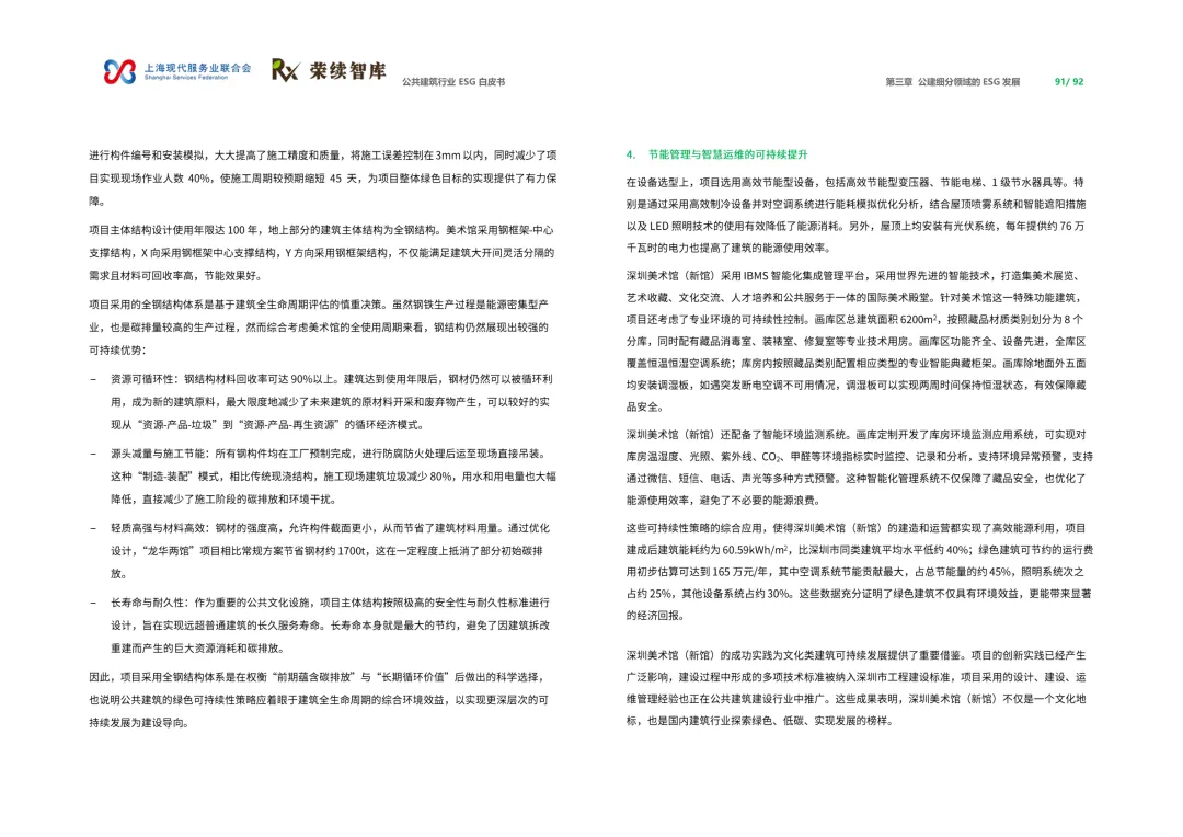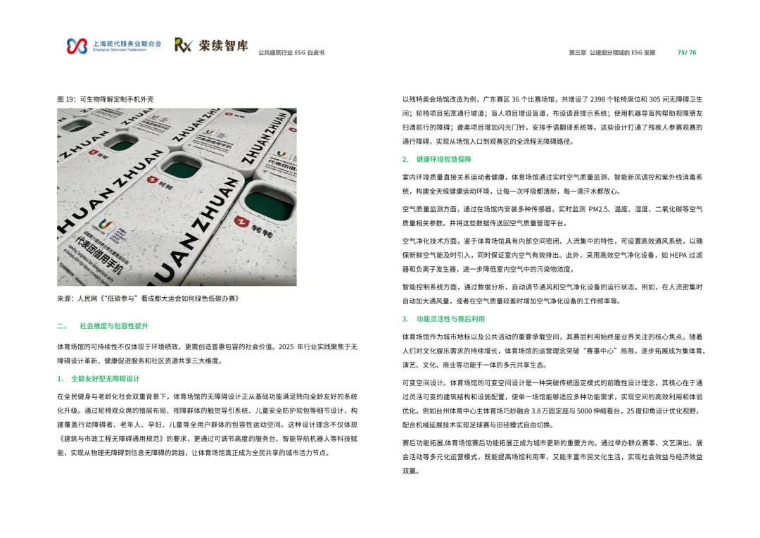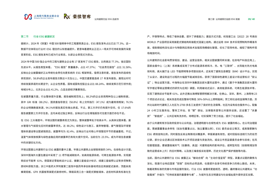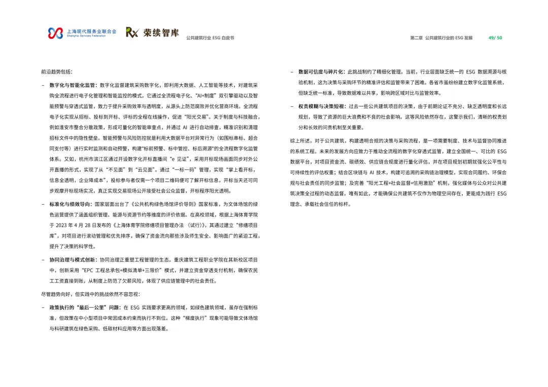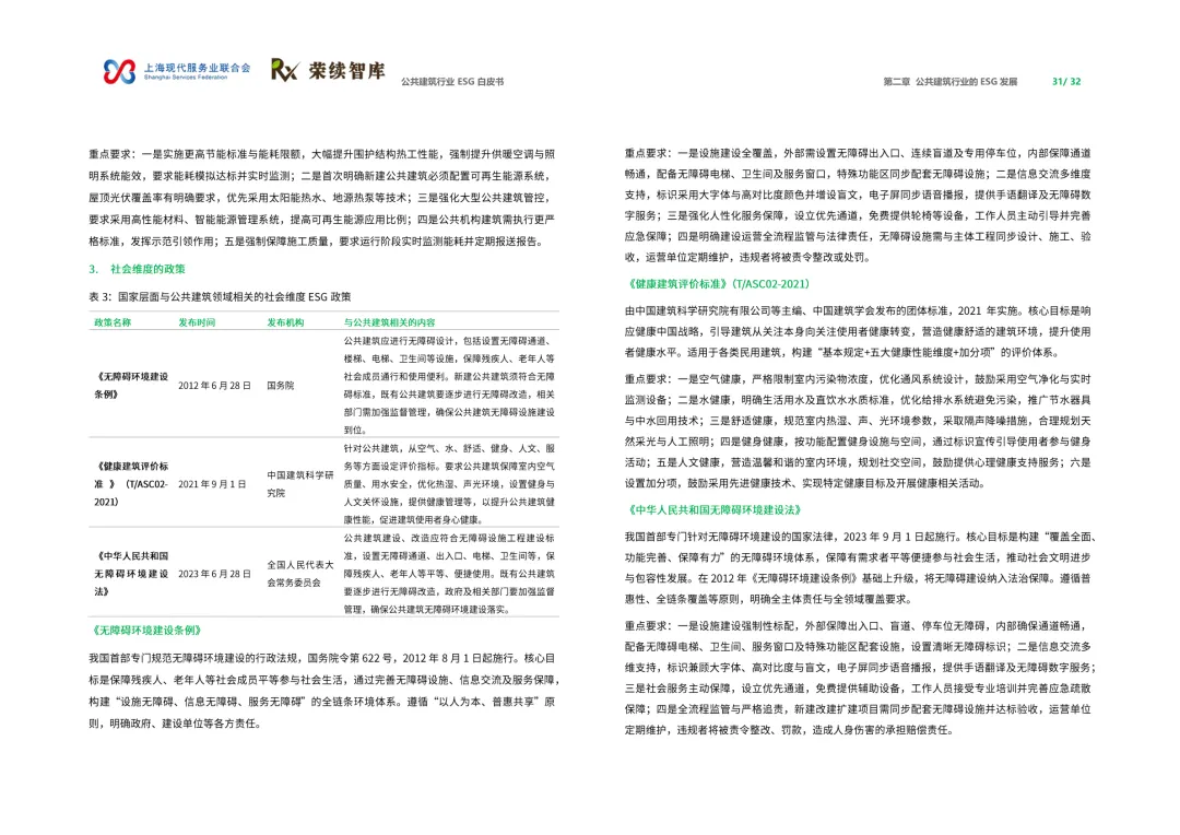 公共建筑行业 ESG 转型已成为城市可持续发展的核心支撑,政策体系从单一节能向全生命周期绿色管控演进,覆盖新建标准、存量改造、可再生能源应用等关键领域,形成国家与地方协同推进的治理框架。行业聚焦环境、社会、治理三大维度,环境端以碳减排为核心,社会端强调服务公平与包容性,治理端注重决策透明与合规。细分领域实践各具特色,教育建筑侧重全周期可持续设计与运维优化,体育场馆通过改造优先、绿色建材应用实现低碳运营,图书馆与博物馆融合文化传承与绿色技术创新。中国建筑、金隅集团等企业打造标杆项目,集成光伏一体化、智能运维、再生材料等技术,推动近零能耗建筑规模化发展。英国制造业绿色技能政策为行业提供支撑,聚焦现有岗位升级,涵盖实用、赋能及认知类技能,通过技能护照、专项培训等机制推进人才转型。两者协同发力,既推动公共建筑全链条低碳转型,又通过技能升级保障转型落地,为行业可持续发展注入双重动力。