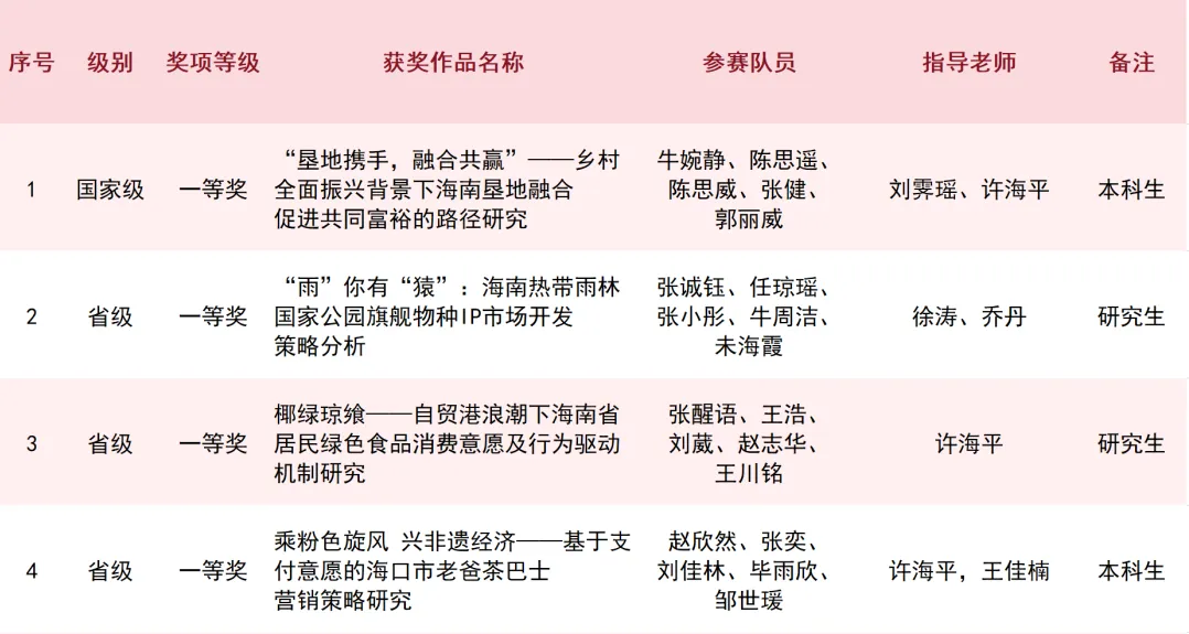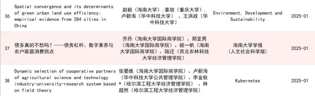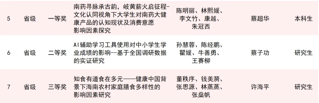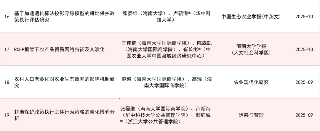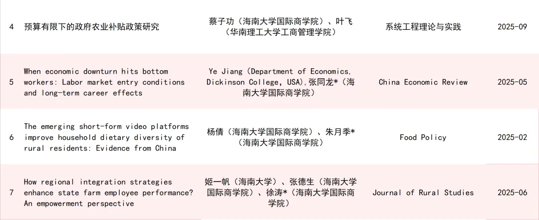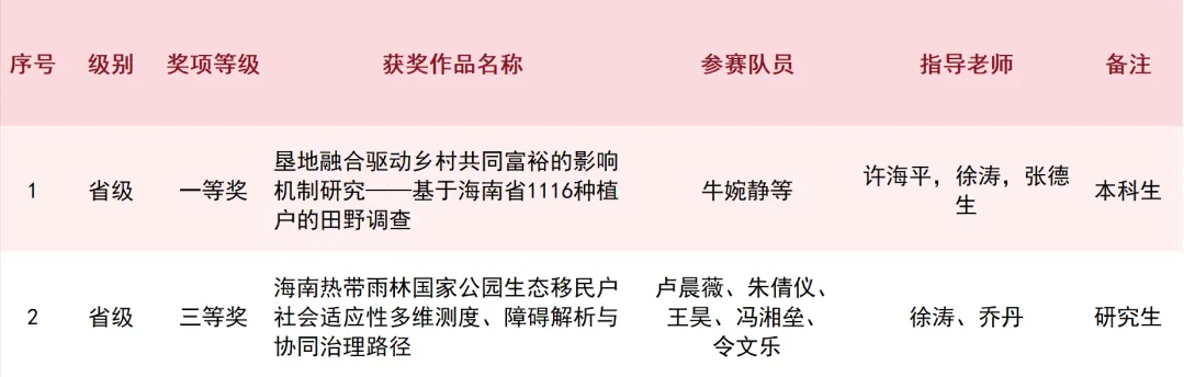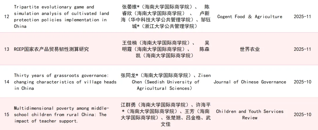 本年度共获得国家级项目2项,省部级项目10项,教改项目1项。研究议题紧密贴合粮食安全、海洋渔业、海南自贸港建设等国家前沿战略需求。