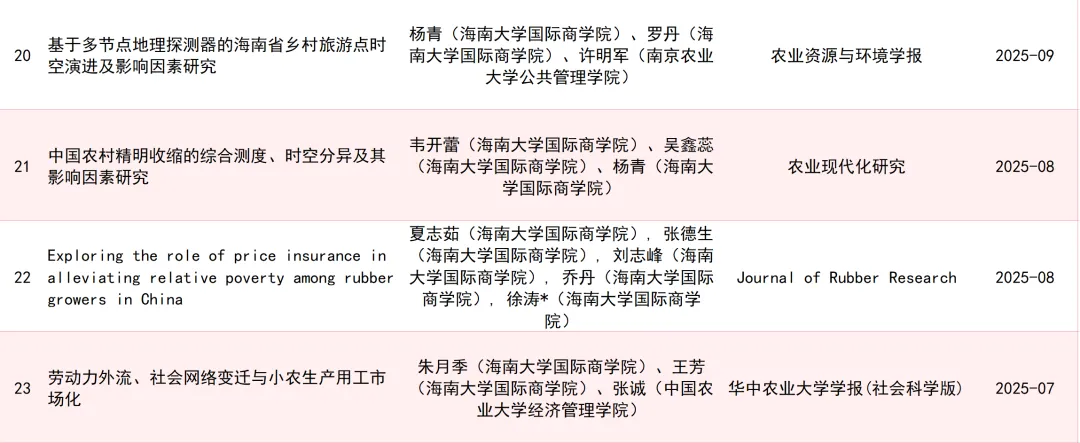主办“2025年全球热带农经尖峰论坛”,来自联合国环境规划署、英国阿伯丁大学、北京大学、上海交通大学、中国人民大学、中国农业大学、华南农业大学等23家单位的80余位专家学者齐聚一堂,聚焦新格局下海南自贸港及全球热区农业农村发展问题展开研讨交流。