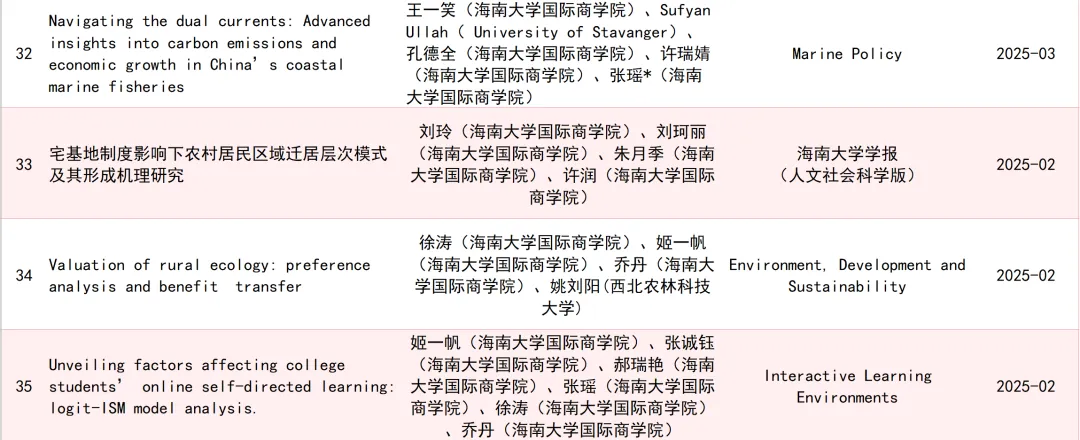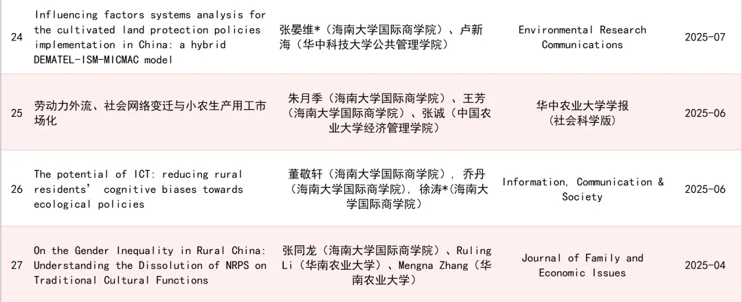 在《经济学(季刊)》《中国农村经济》《中国农村观察》《系统工程理论与实践》,China Economic Review,Food Policy,Journal of Rural Studies等国内外重要期刊发表论文40余篇。