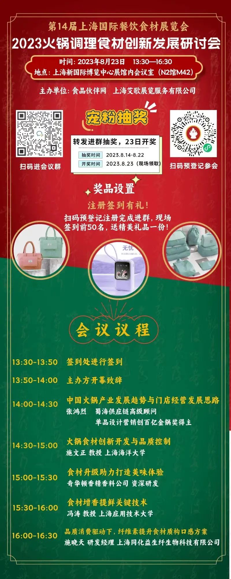 感谢您参加“2023第14届上海国际餐饮食材展览会”,展会各项准备工作已进入最后阶段,为了让您能更好地安排展前各项工作,主办方特意为您整理了以下重要事项,希望能够帮助您顺利完成准备工作。