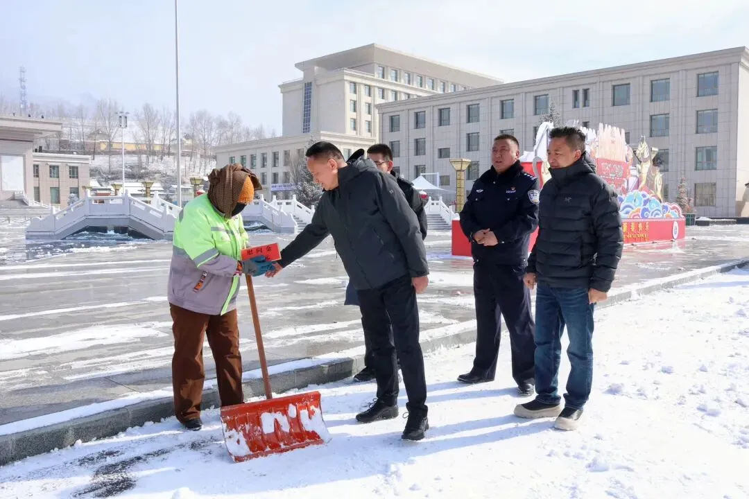 在勒尔多东路,旦正昂杰同清扫积雪的环卫工人们一一握手、亲切交谈,关切询问大家的工作休息、后勤保障和生活状况,叮嘱他们注意保暖、保重身体。他指出,环卫工人是最美县城的“守护者”,希望大家继续发扬爱岗敬业、无私奉献的精神,在平凡的岗位上,书写不平凡的事迹,守护好县城的每一条街道。并要求相关部门持续加强对环卫工人的关心关爱和日常保障,让他们能够安心工作、舒心生活。