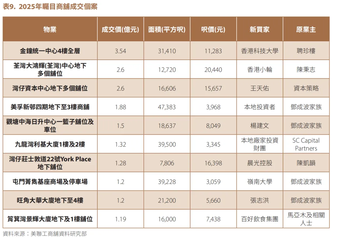 用家需求方面,政府积极发展教育产业,专上院校及教育机构正寻找大面积铺位作校舍或教学用途,大型基座商场因呎价较低、面积集中,预期将成为2026年另一类受关注的铺位资产。