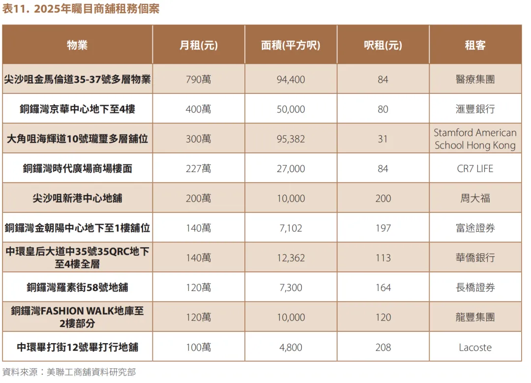 零售品牌方面,租金已较高峰回落近两成,预期中外连锁品牌会趁租金仍处低位期间进驻核心旺区,部分金融机构亦会租用地舖作品牌展示及高端客户接待空间,为核心区铺位提供另类支撑需求。