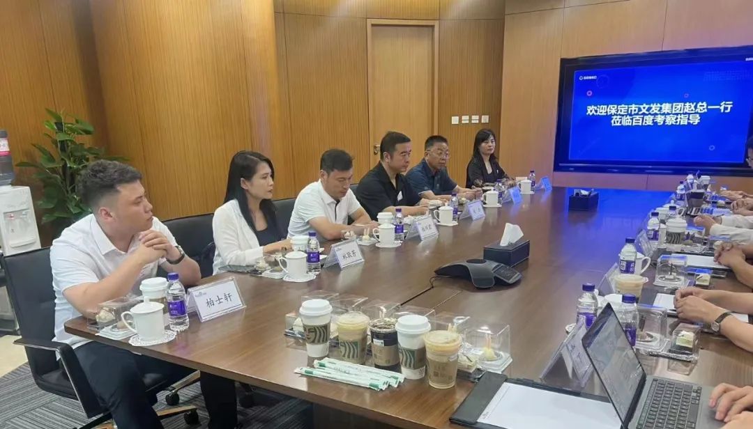 ▶▶8月14日下午,文发集团总经理赵杰带队赴百度集团总部考察,深入交流大学保定校区合作办学事宜。文发集团大学工作专班相关负责人陪同。