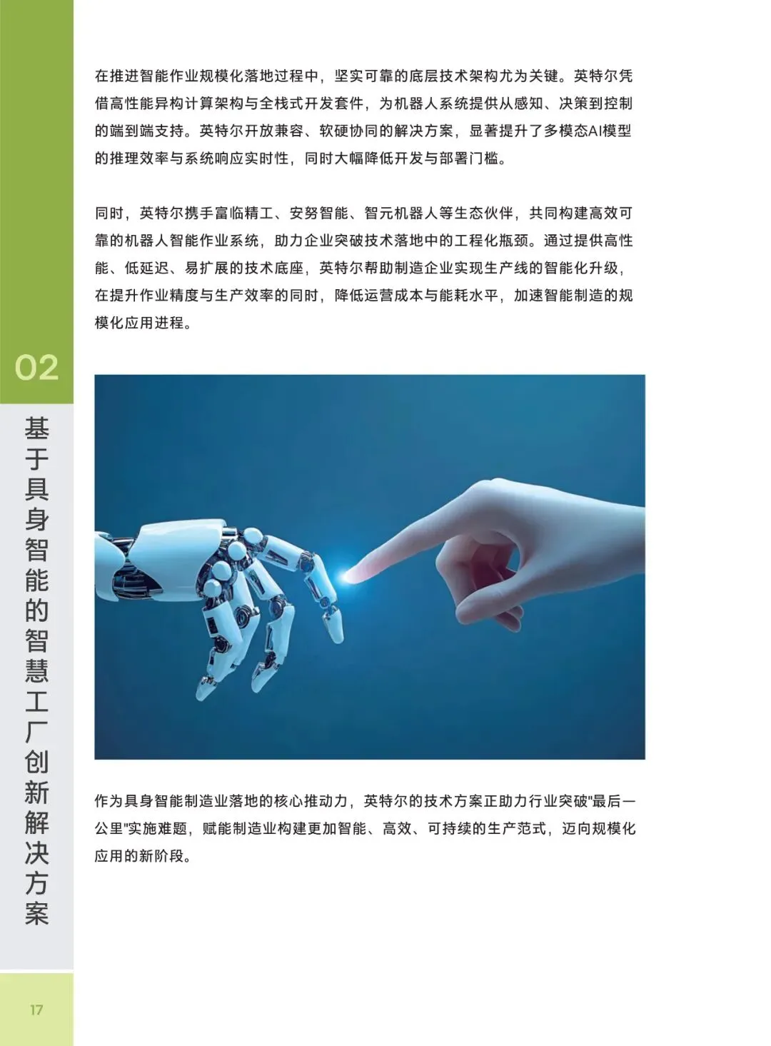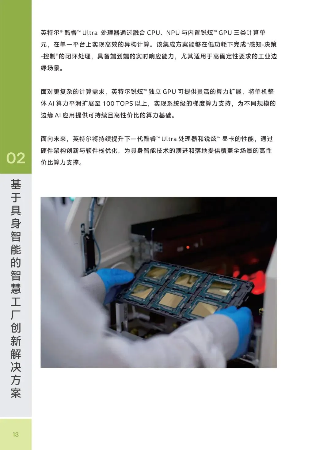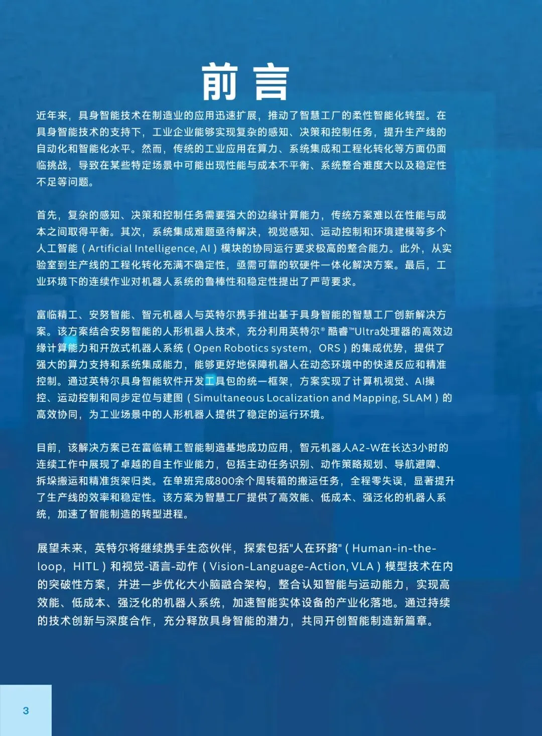 在全球制造业加速智能化的背景下,具身智能技术已在制造、医疗、物流等领域展现巨大潜力,但仍面临算力成本平衡、系统集成复杂、场景适配不足等落地挑战。对此,四方合作推出的创新解决方案,以英特尔酷睿 Ultra 处理器为算力核心,通过 CPU、GPU 与 NPU 的异构协同,实现了性能与成本的精准匹配,同时依托开放式机器人系统(ORS)和专属开发套件,攻克了多模态协同与工程化部署难题。