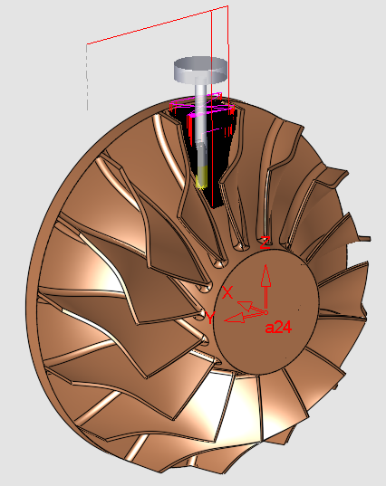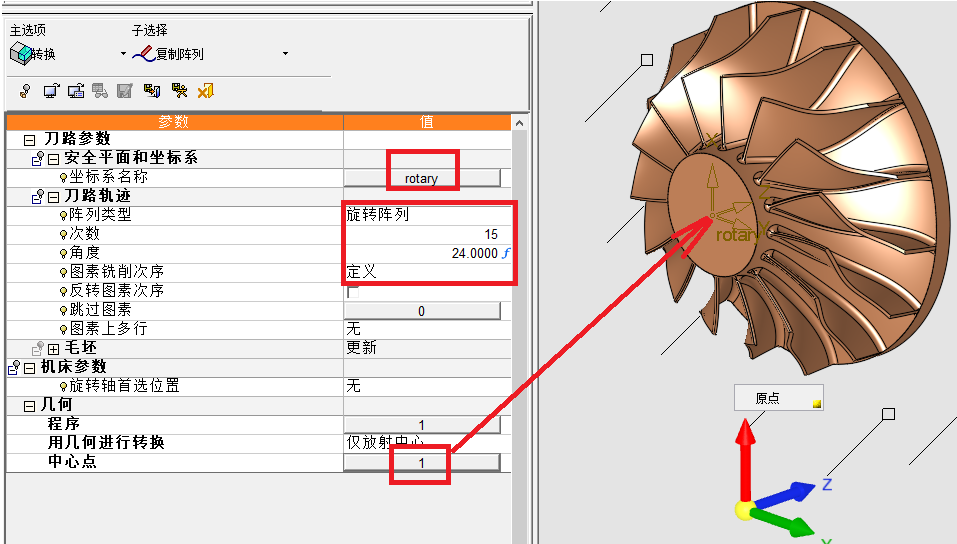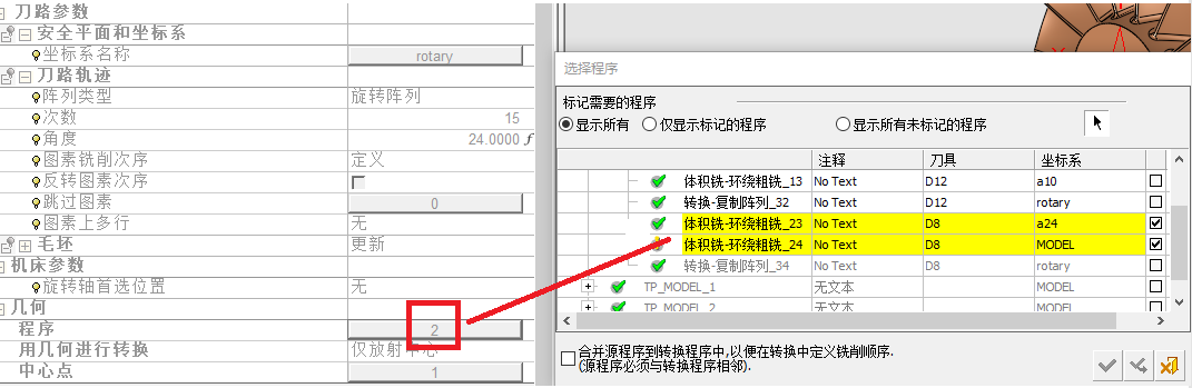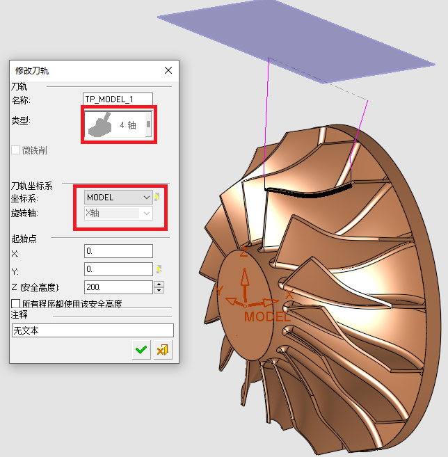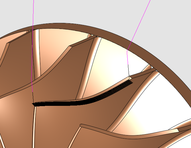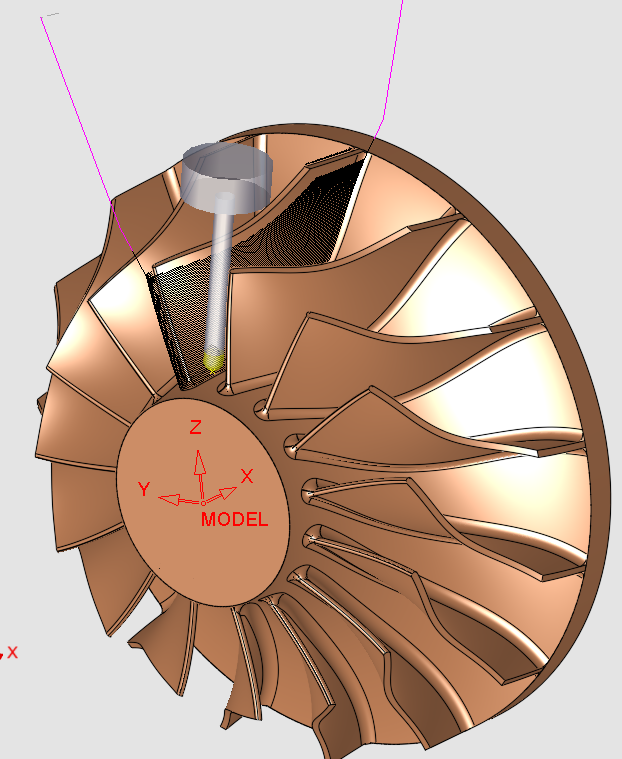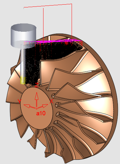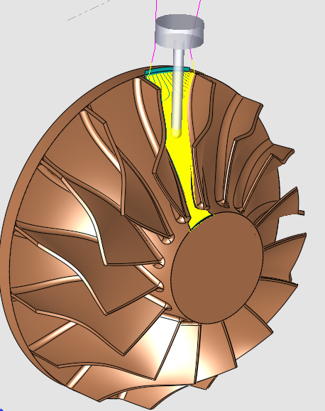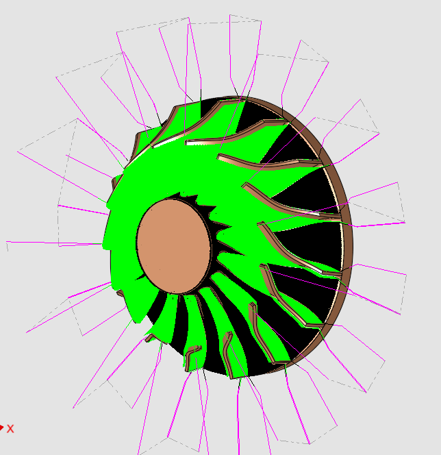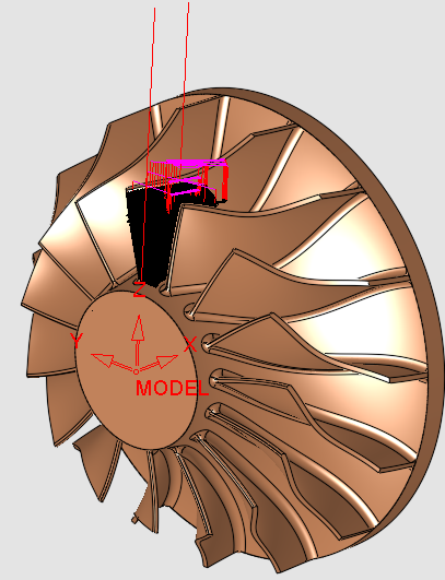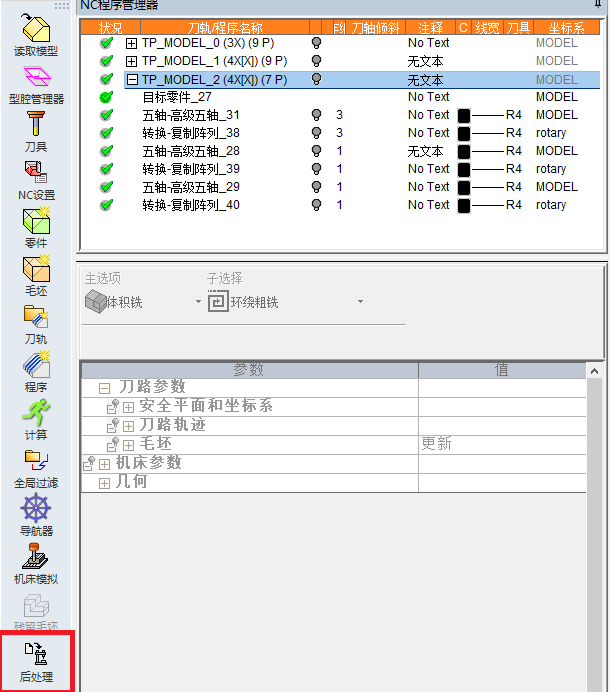 采用体积铣--粗加工环切策略,加工范围选择上图的建立的轮廓。刀具为D8立铣刀。切深0.4,步距5,转速S5968,F3000。余量0.5