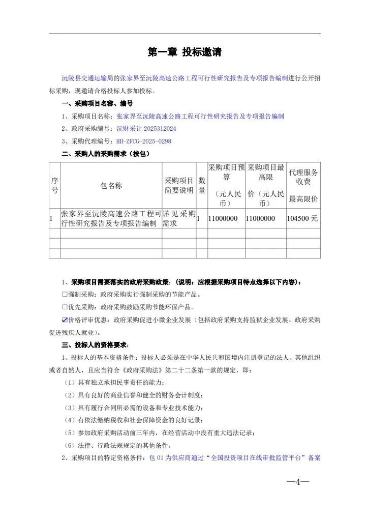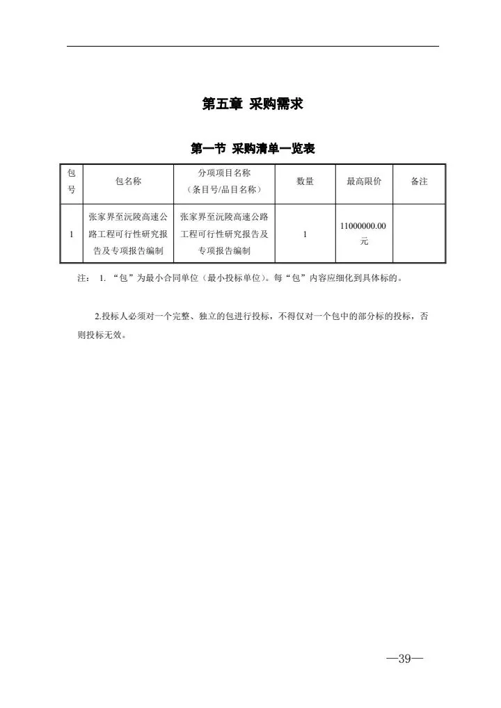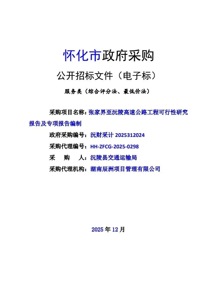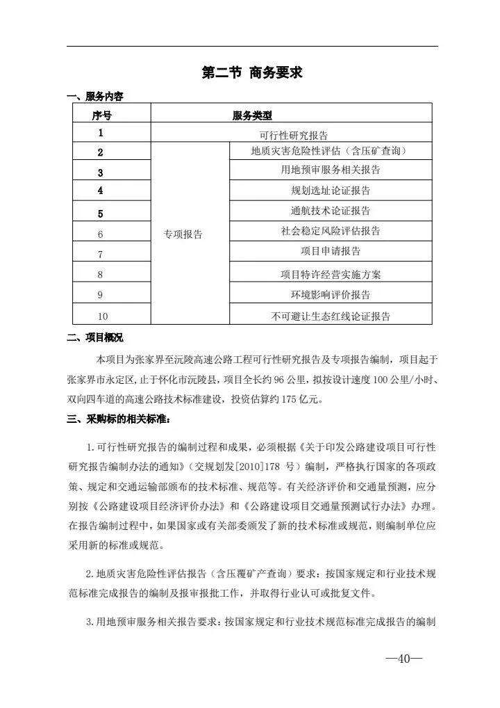 张家界至沅陵高速公路工程可行性研究报告及专项报告编制进行公开招