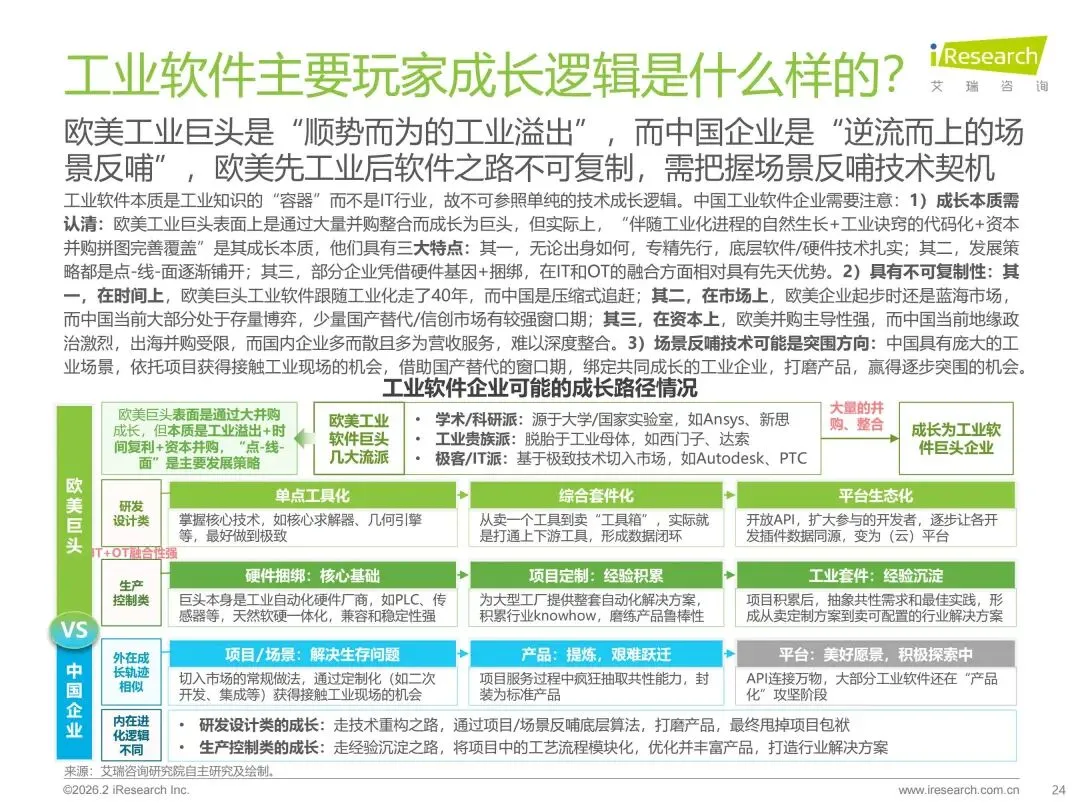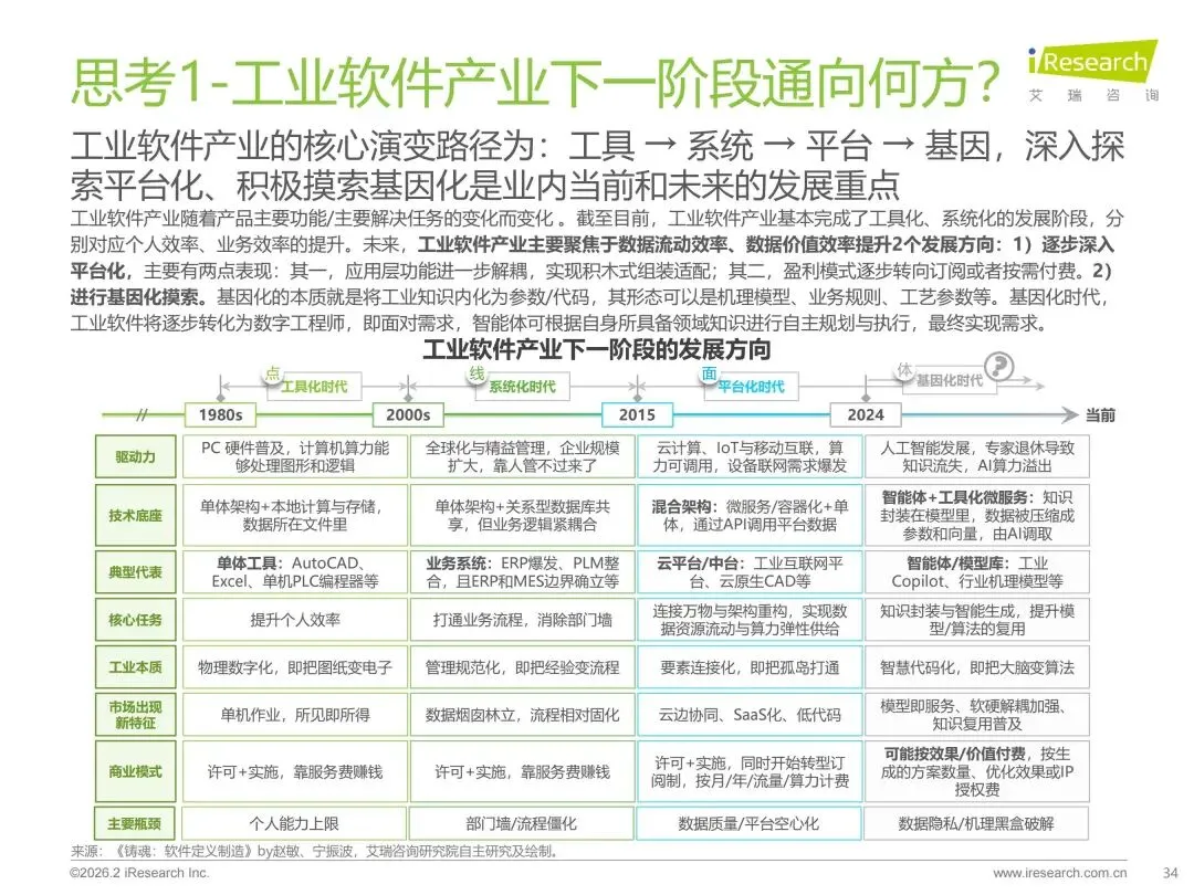 因此,在云原生技术逐步成熟、“大模型+”盛行的当下,针对工业软件的发展状况研究也颇有必要。因此,报告基于工业软件当前所处的宏观环境,主要围绕工业软件产业整体局势、产业发展慢的客观规律、当前新进技术等变量对产业的影响等方面进行了分析,最终针对未来工业软件产业、市场、产品的发展方向进行了展望。